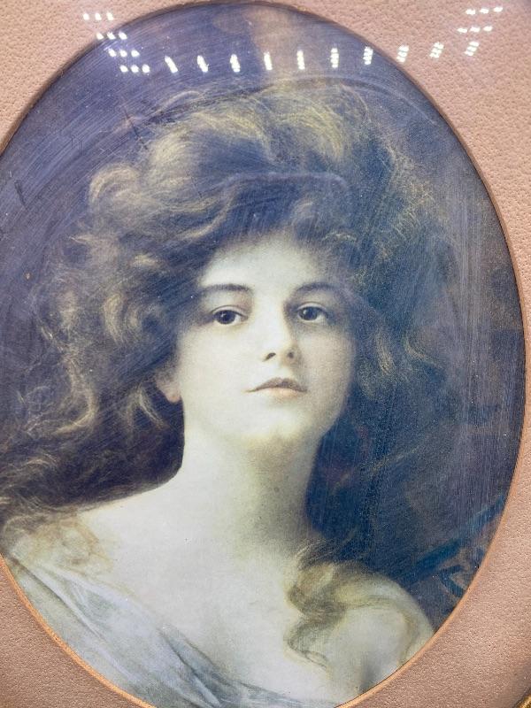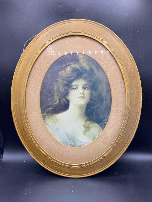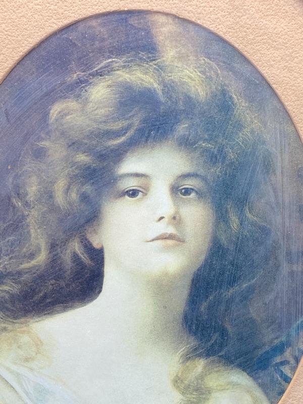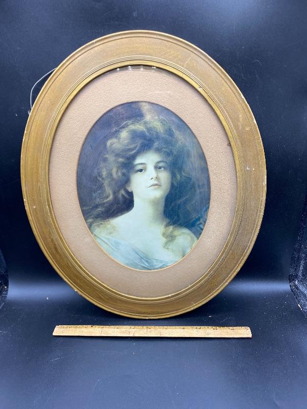 Victorian Girl art. Framed and matted in a oval frame. Image is quite smaller then frame used.