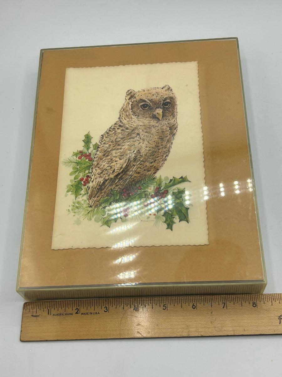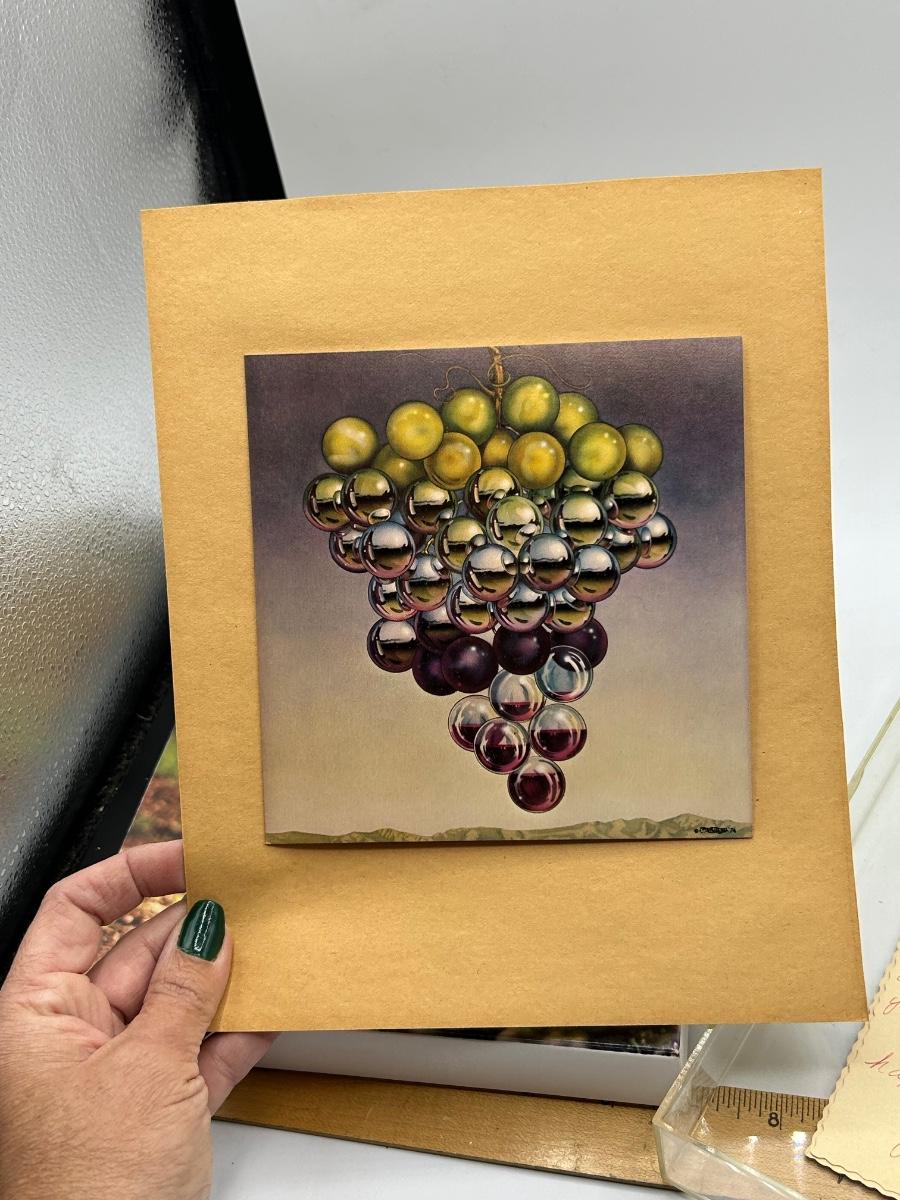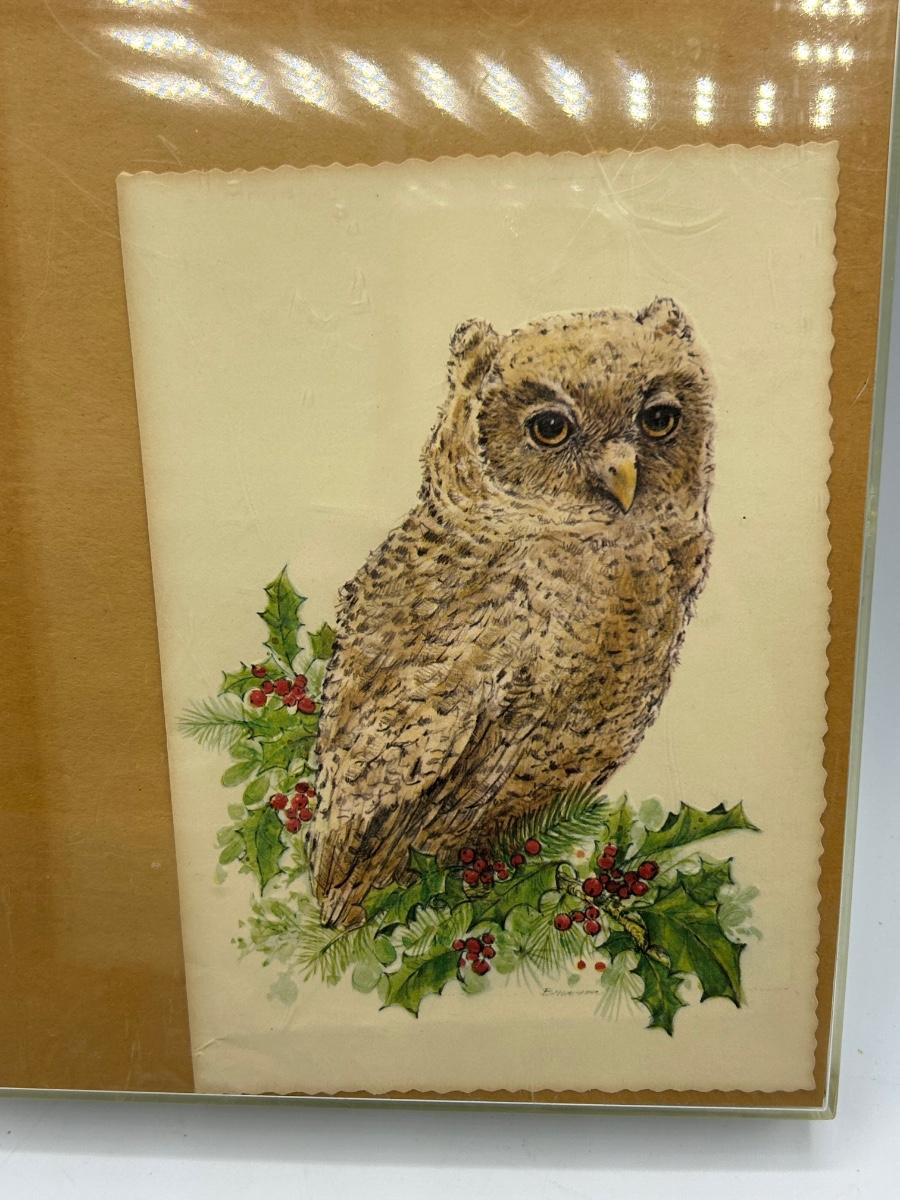 Framed Owl Christmas Card with Retro Grapes Art Card Underneath. Two great paper art images.