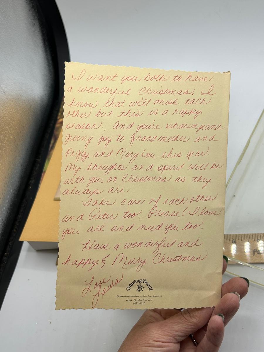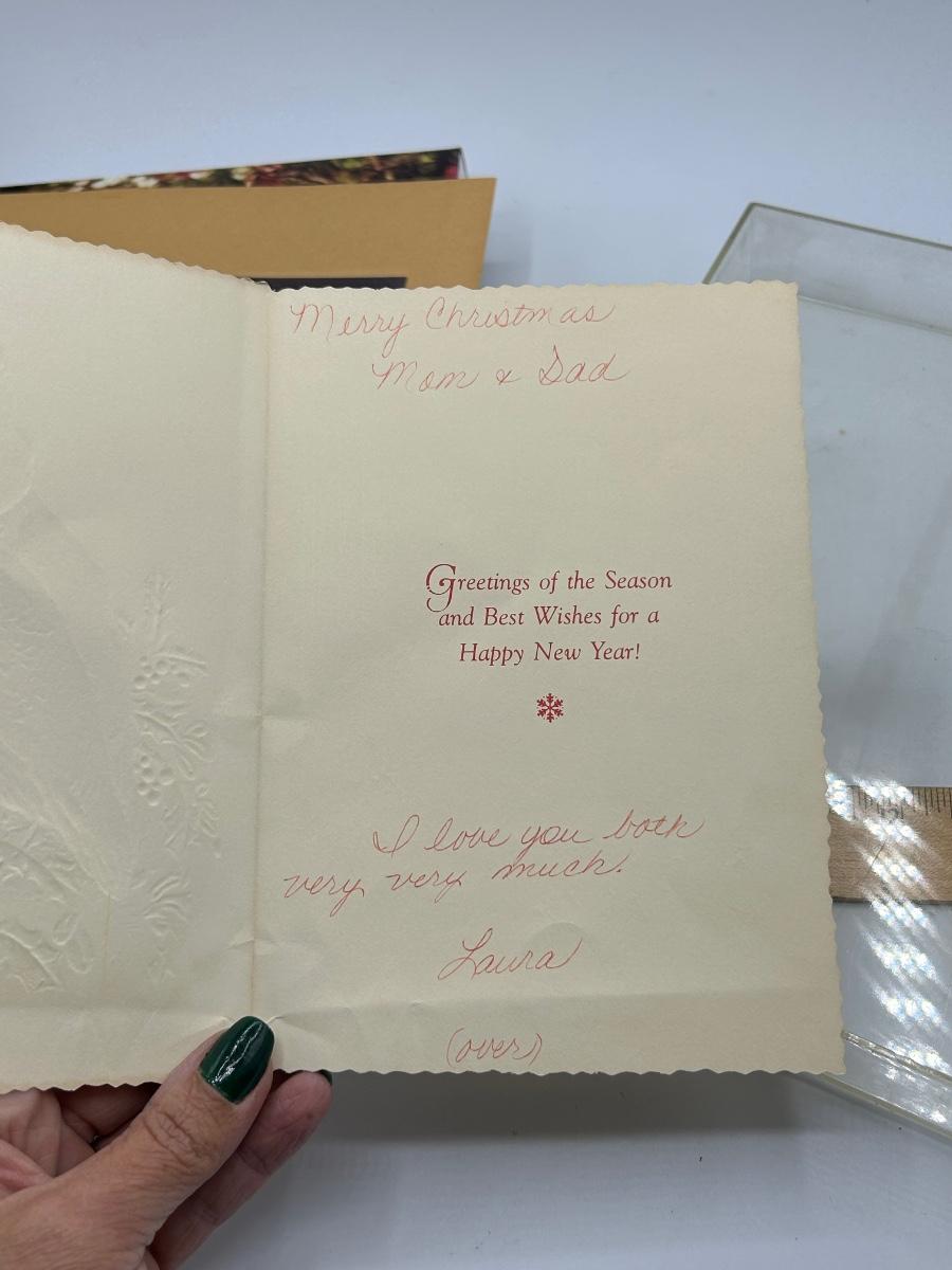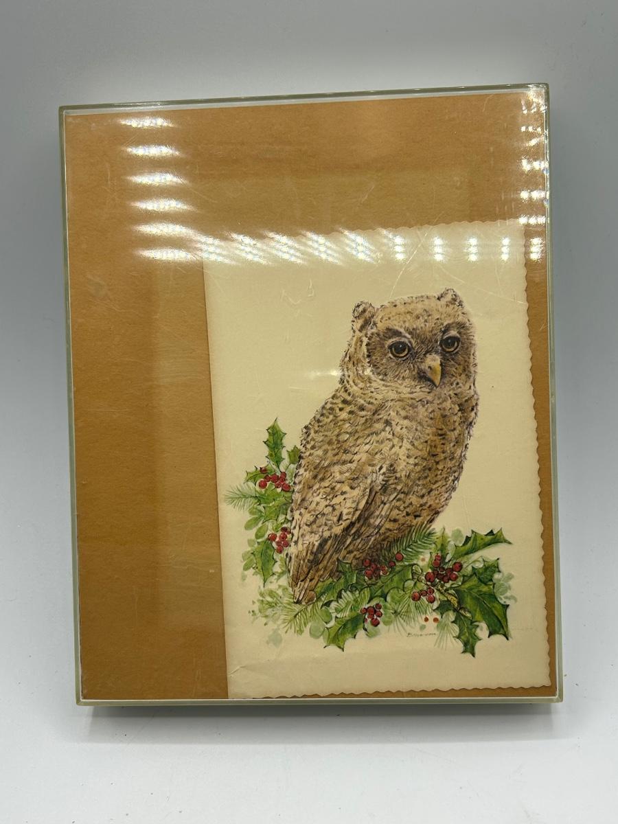 Framed Owl Christmas Card with Retro Grapes Art Card Hidden Underneath