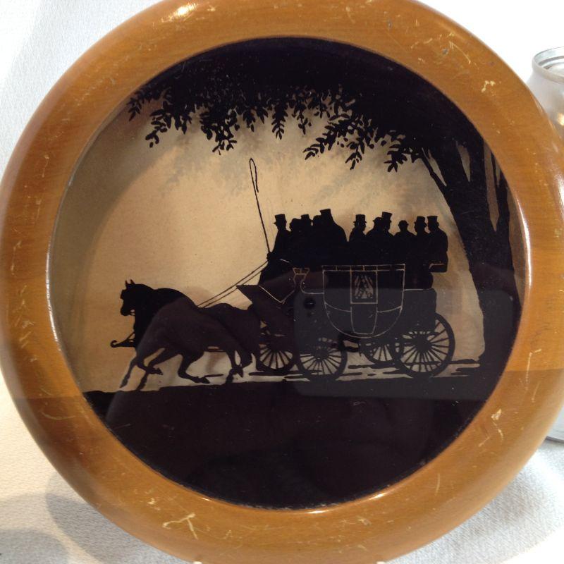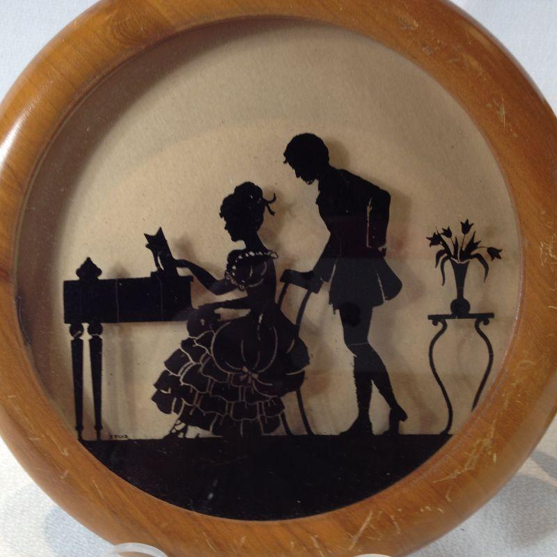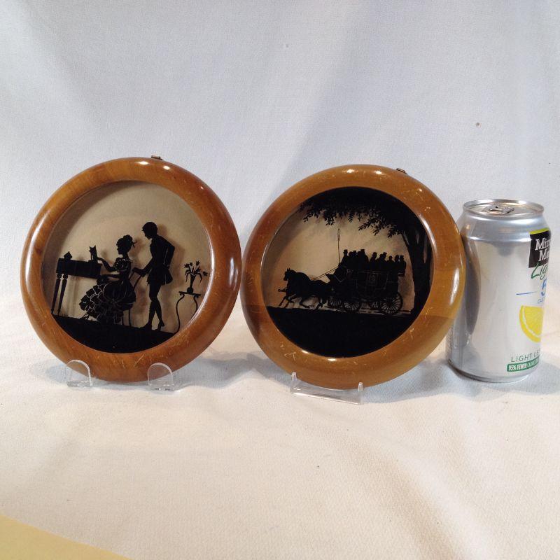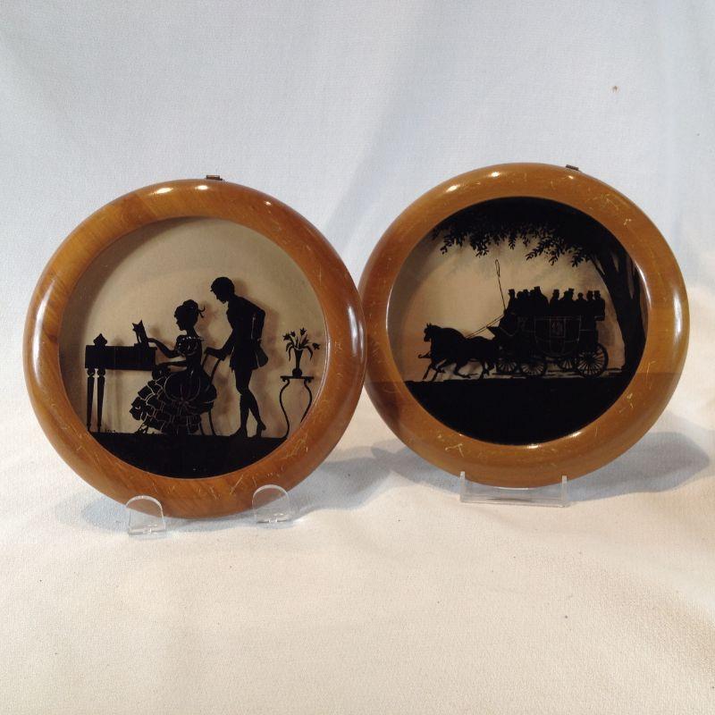 This offering is for a nice pair of Silhouettes - reverse painting/screened on glass, from the 50's. They are framed and ready to hang. The frames have a few scratches consistent with age, easily touched up.