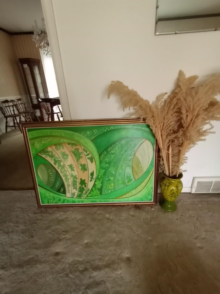 FRAMED PAINTING AND VASE