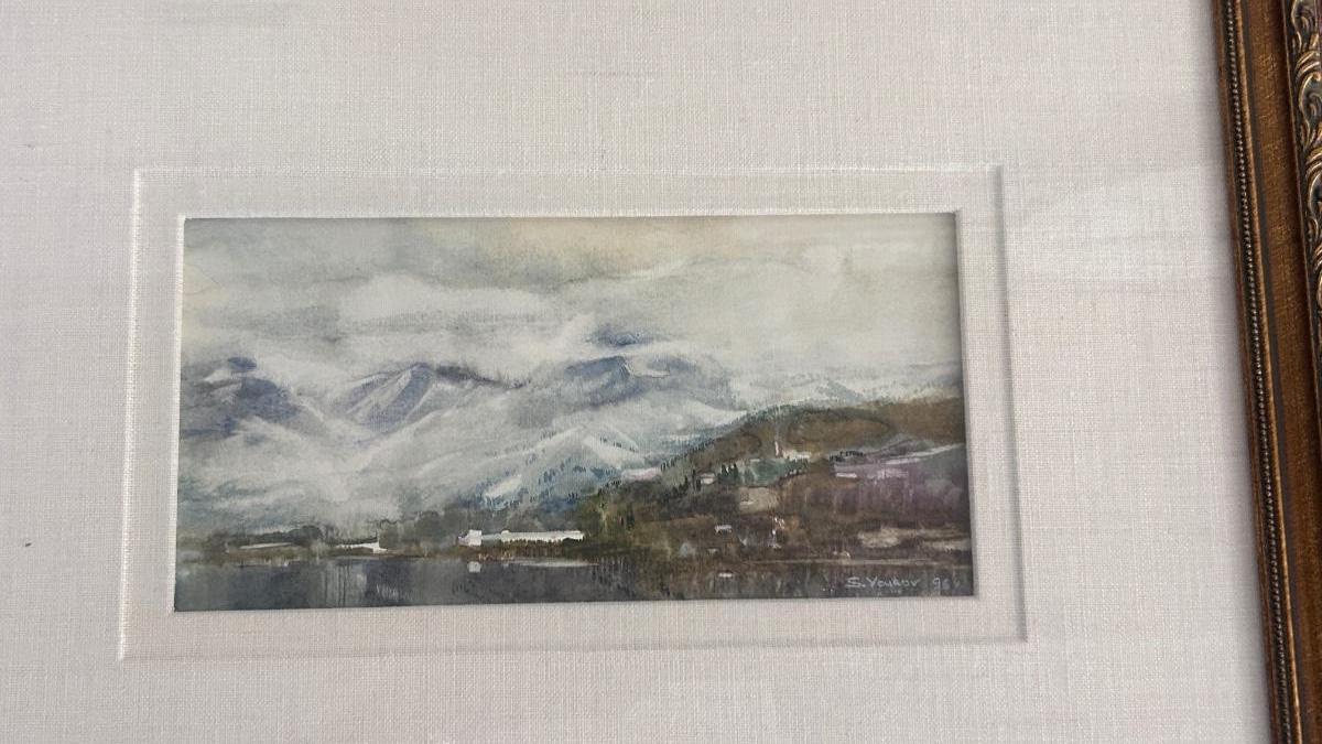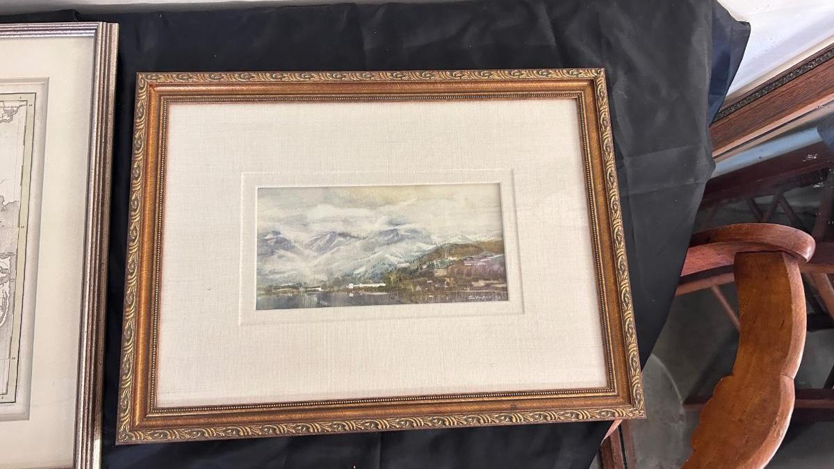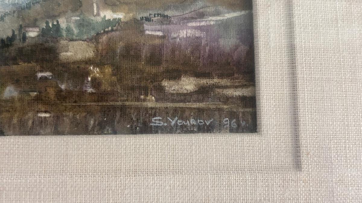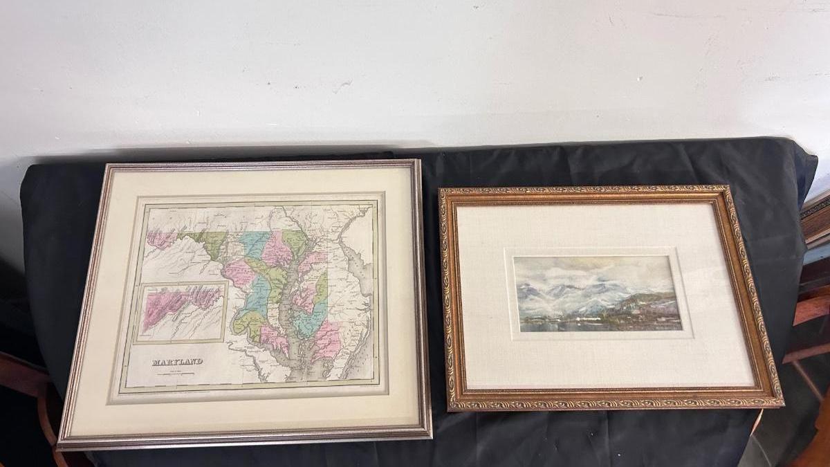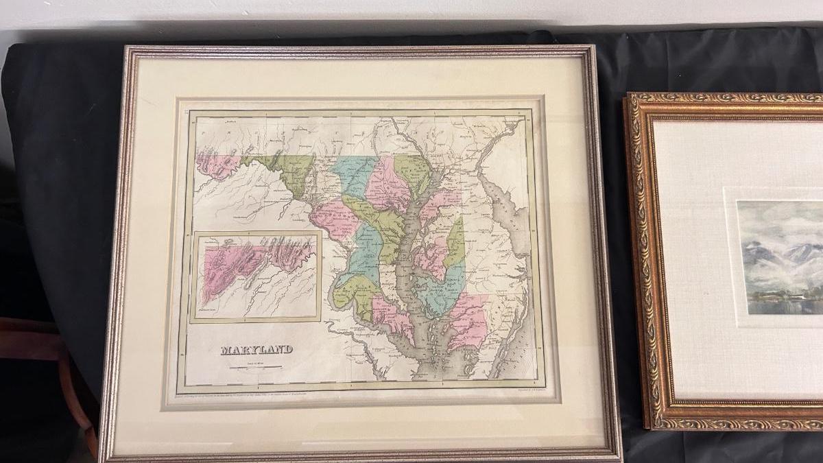 FRAMED PAINTING BY ARTIST S. YOUNOV & FRAMED HAND COLORED MAP OF MARYLAND