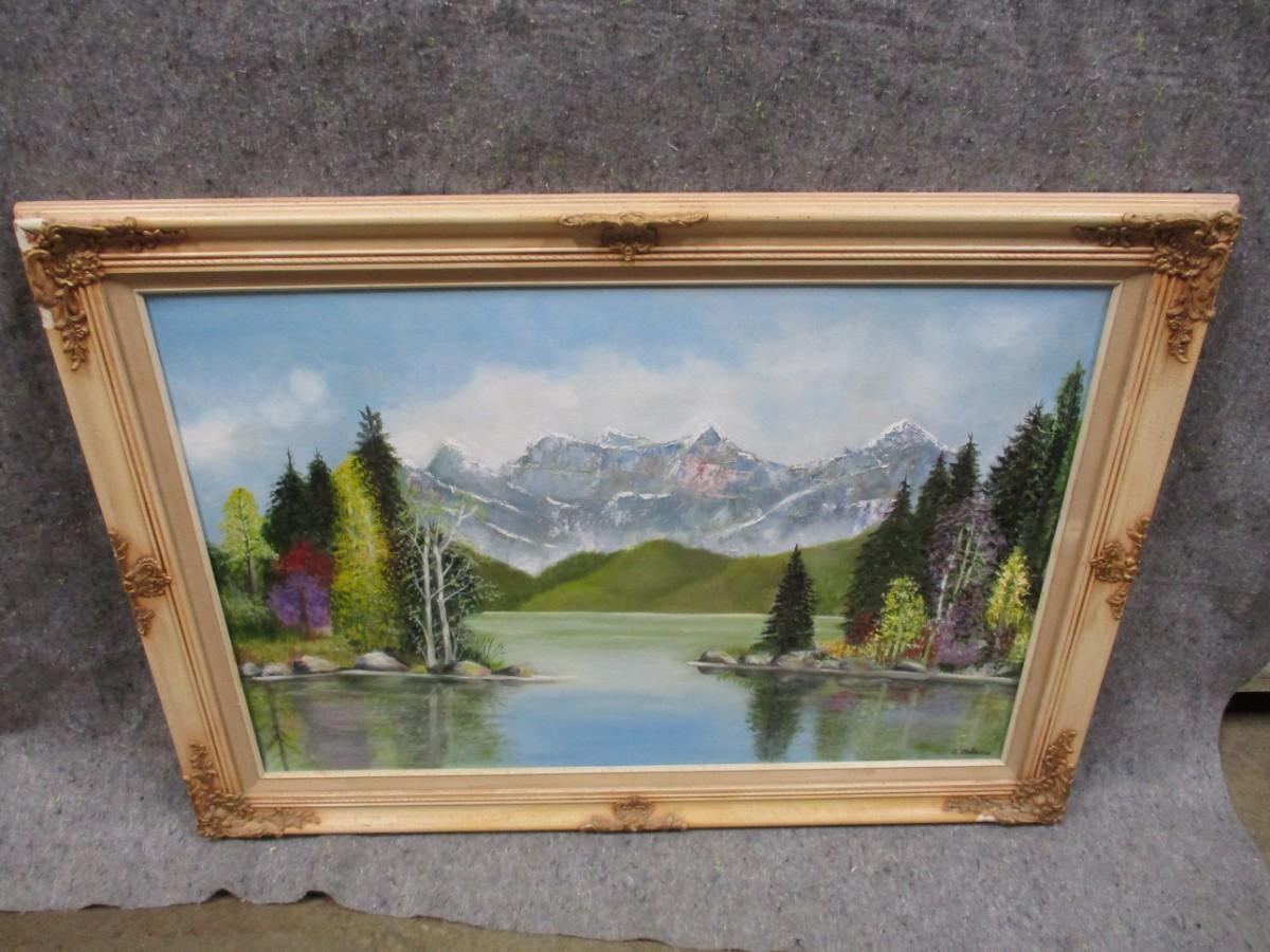 Framed Painting Mountain Scenery Approx 41 1/4" x 30 1/2"