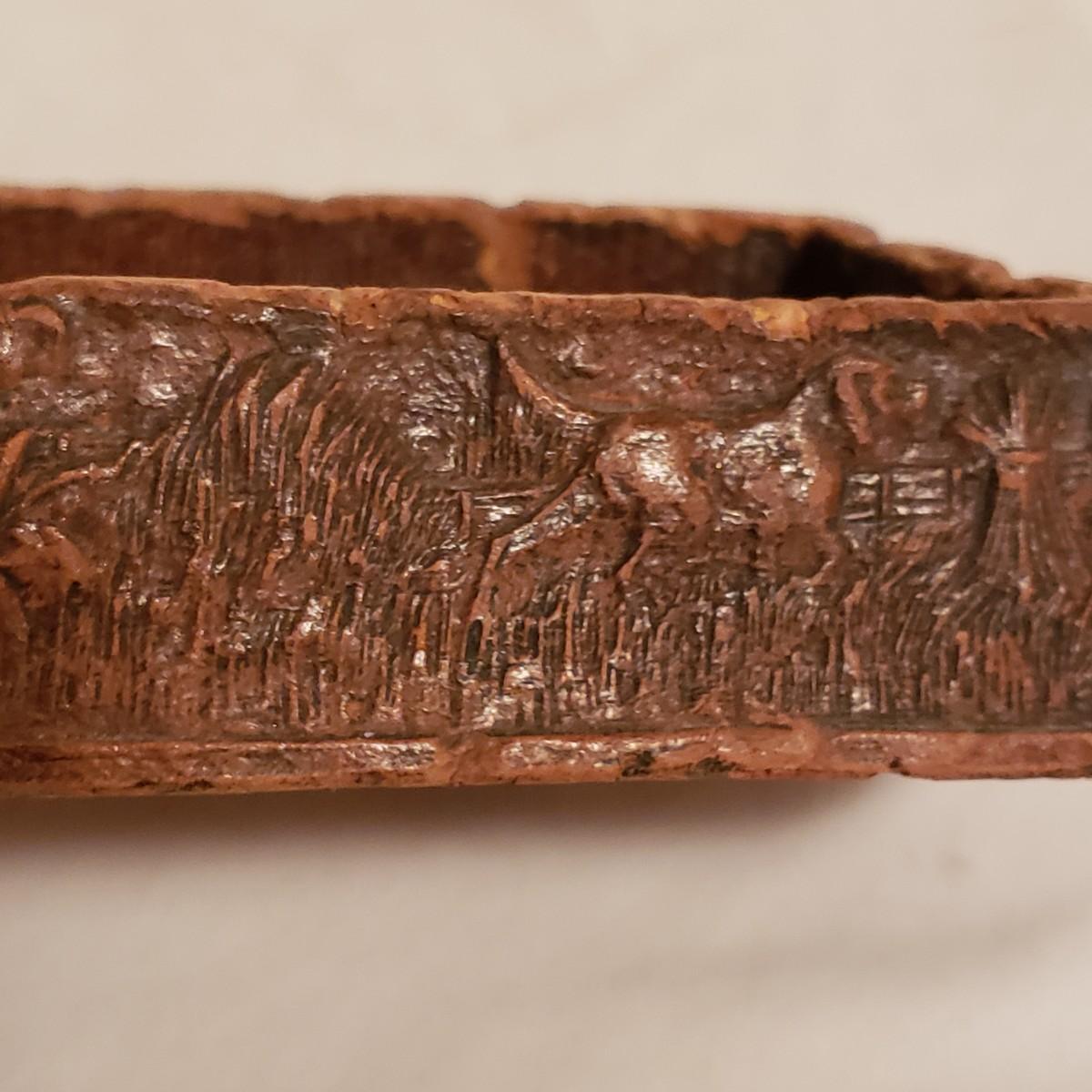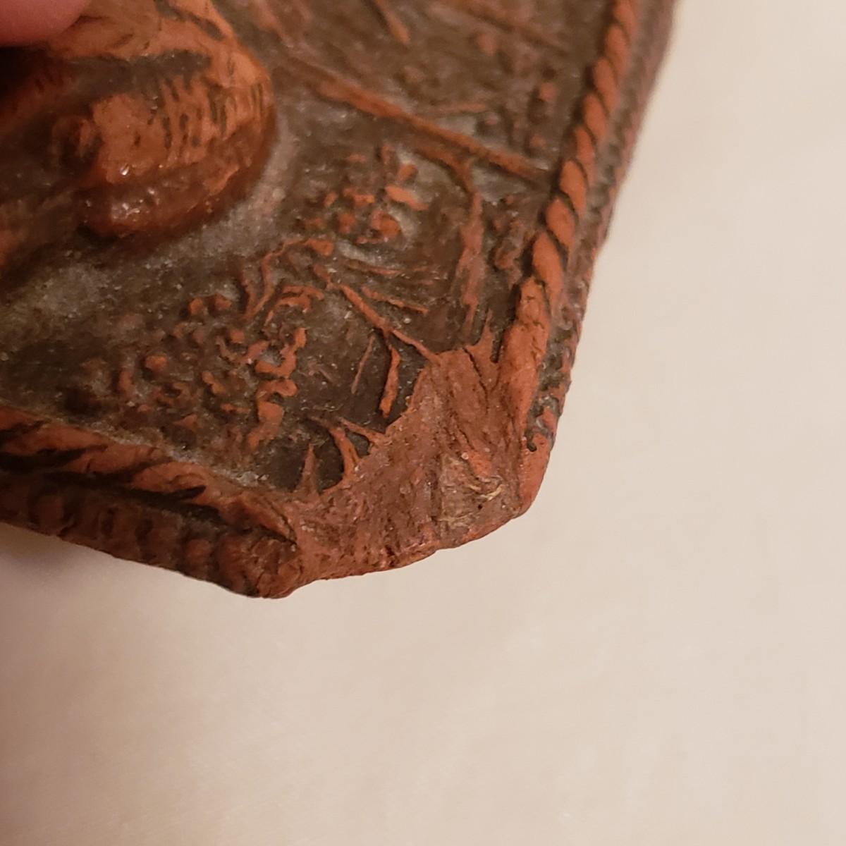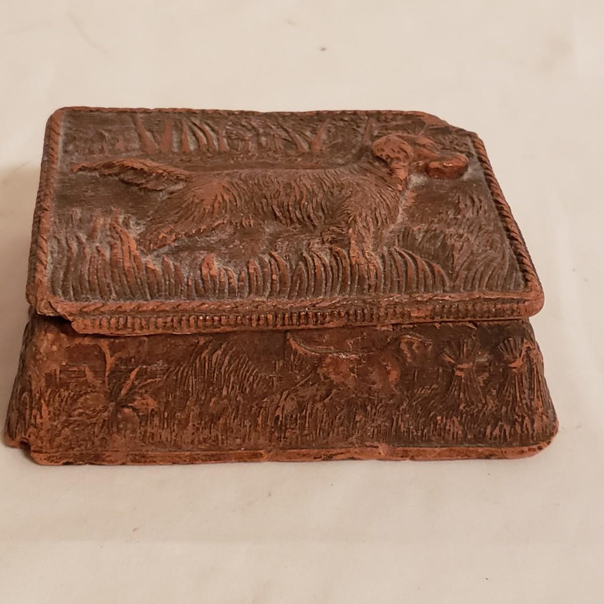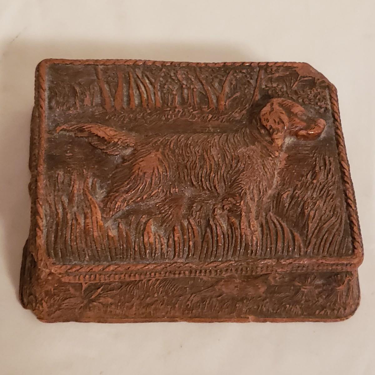 This lot has a wooden frame print by Paul Wood. The signed picture is matted behind glass measures 16" x 13"H. There are matching trinket box and ashtray. Both pieces appear to be a composite wood. They are both well loved. See pictures for details.