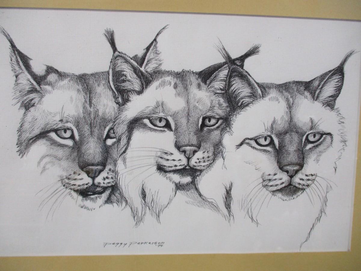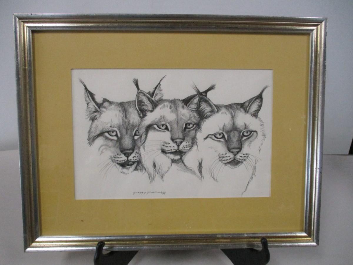 Framed Peggy Perekerson Bobcats Litho 17" x 13 1/4"