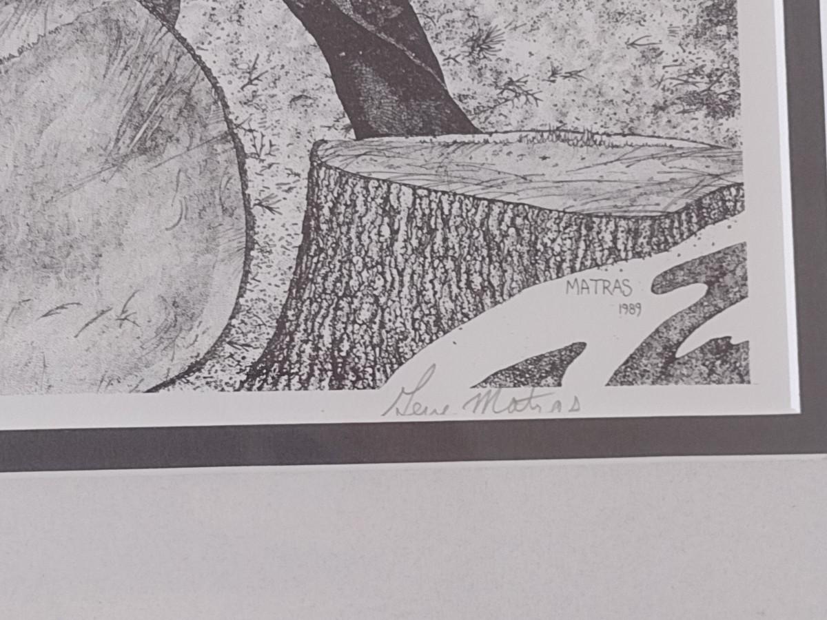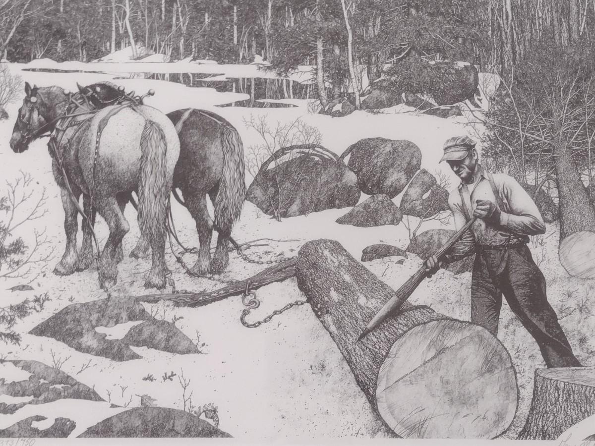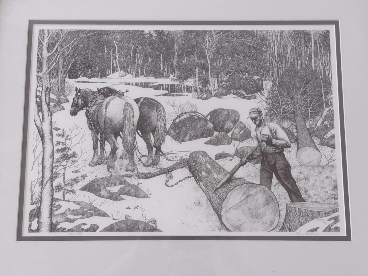 Framed Pen and Ink Art Horse Team Logger Print Numbered and Signed by Gene Matras