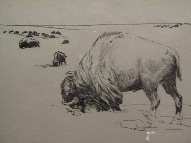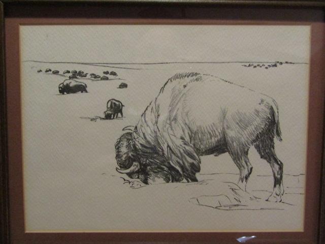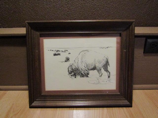 Framed Pencil Art- Grazing Bison