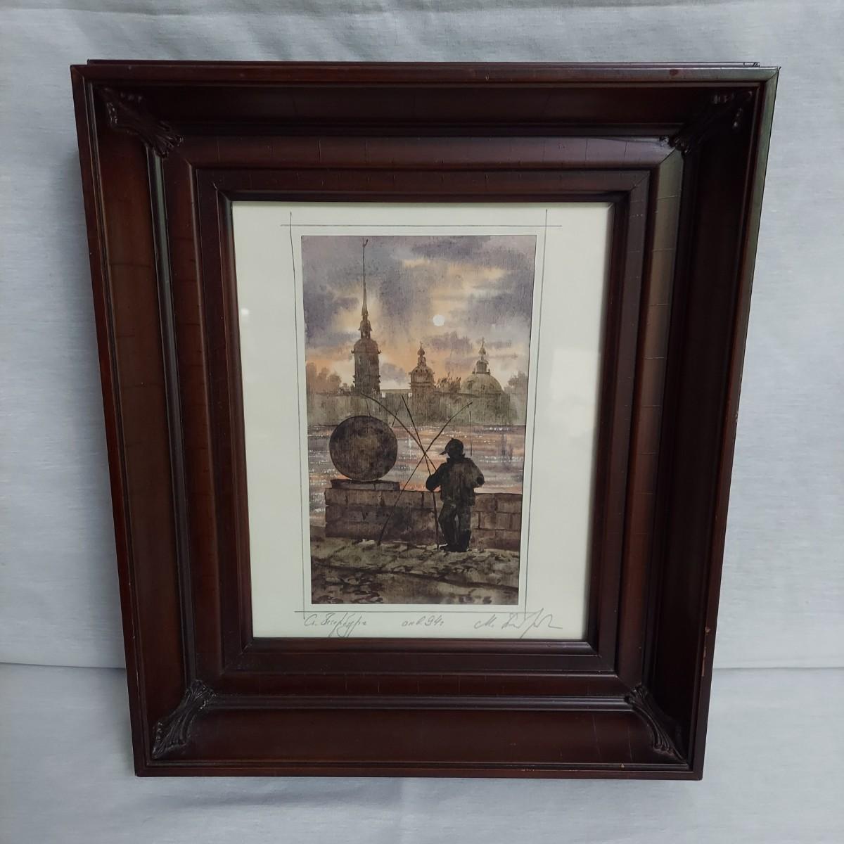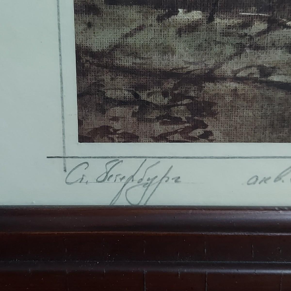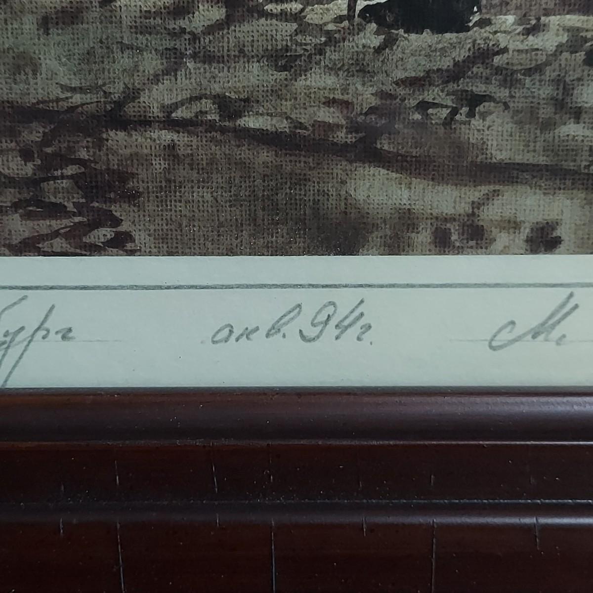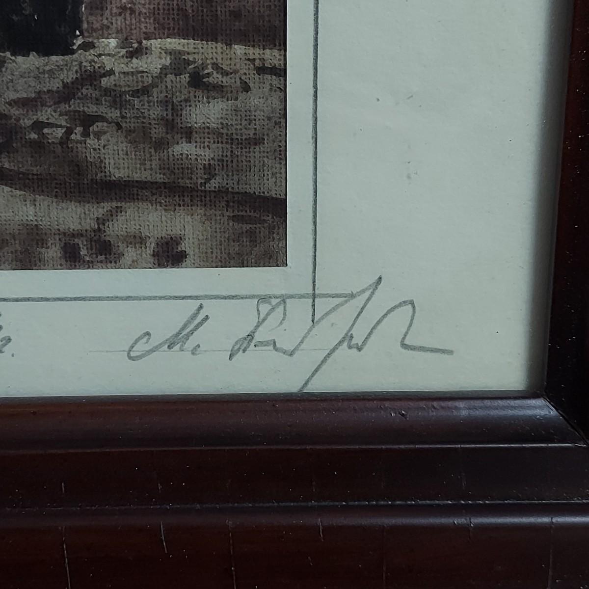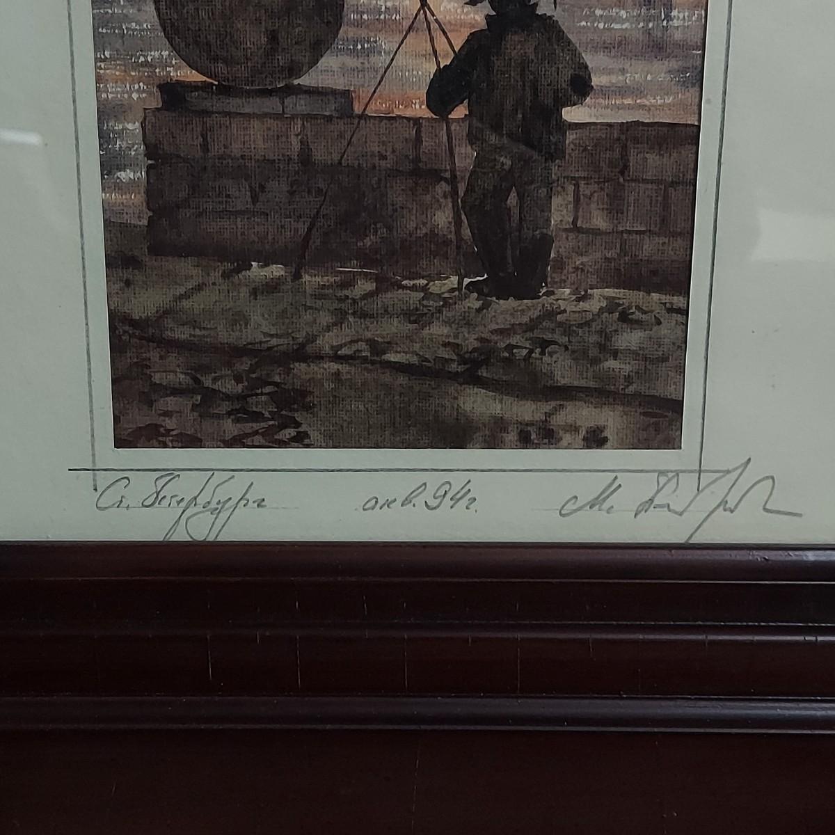 Pencil signed watercolor in wood frame. Appears to be a painting not a print. Could not decipher the signature of the artist. Frame measures 12" x 3" x 14.5"H. Shipping available.