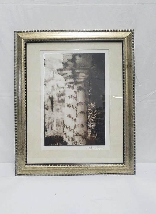 Framed Photo Art, B&W pillar with Plants 19.5"x23.5" Architectural Gardens 16x20