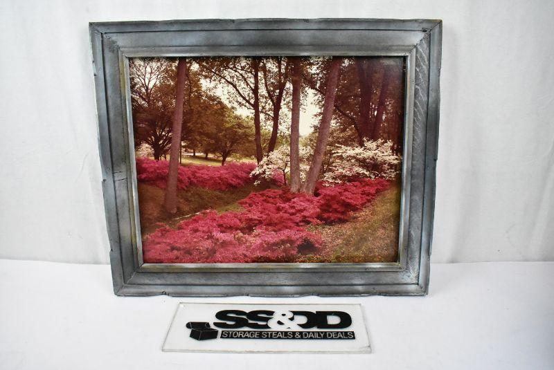 Framed Photo Image of Trees & Flowers in Black/Gray Frame