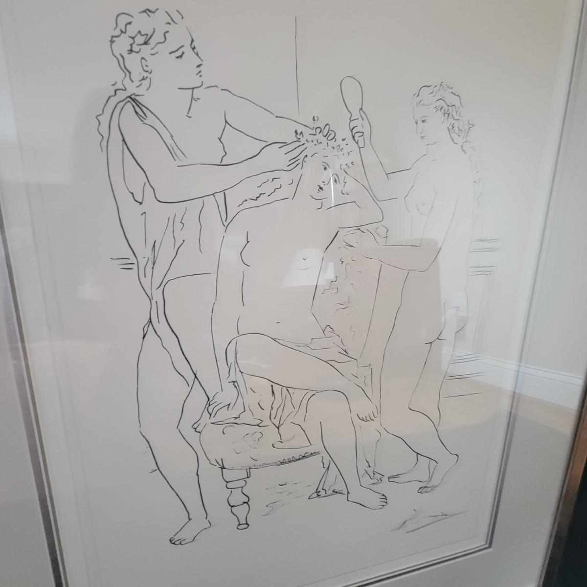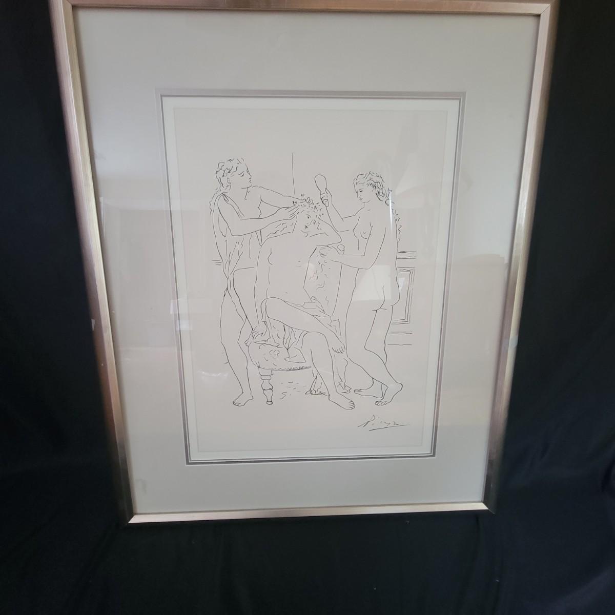 Pablo Picasso print, triple matted in a contemporary silver leaf frame. Frame has a few blemishes, but solid corners. Measures approximately 28" x 34" x 2". Shipping Available. Shipping art can be costly. We suggest calling our local UPS with dimensions and getting an estimate before bidding (828) 252-6930.