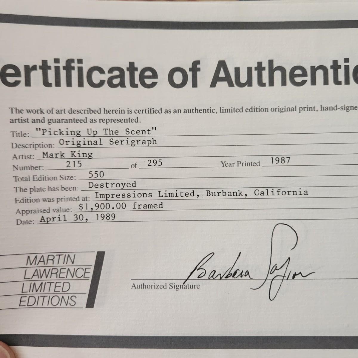 Framed "Picking up the Scent " original Serigraph by Mark King