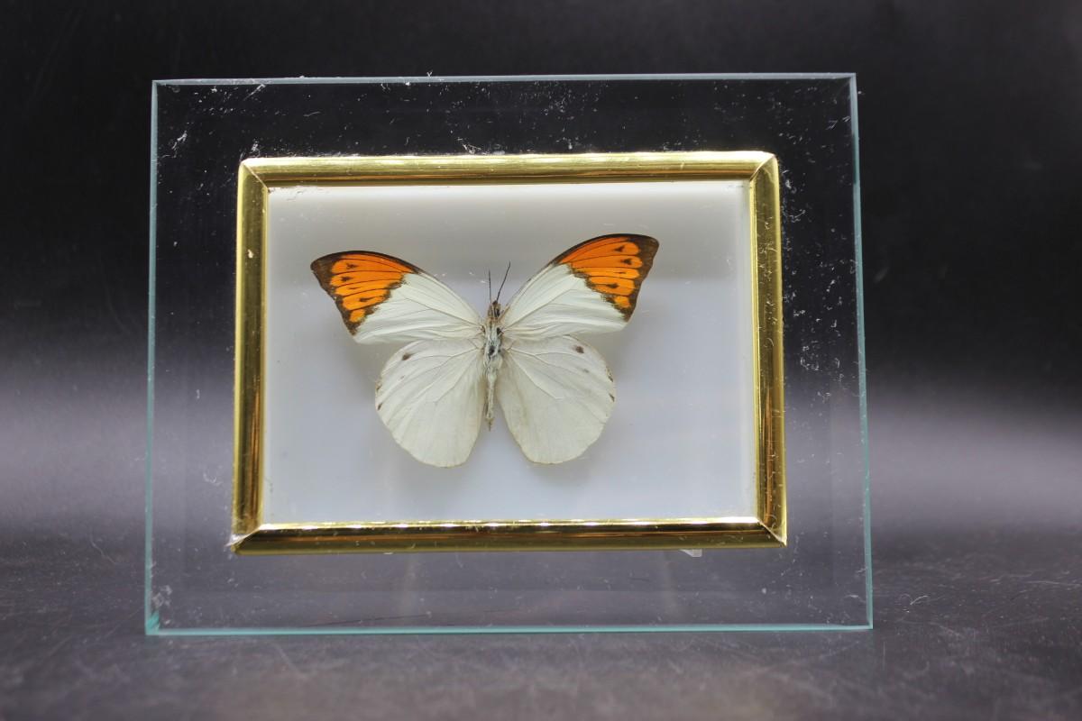 Framed Orange Tip butterfly specimen. In good condition, might be home pinned as it is not quite straight in frame.