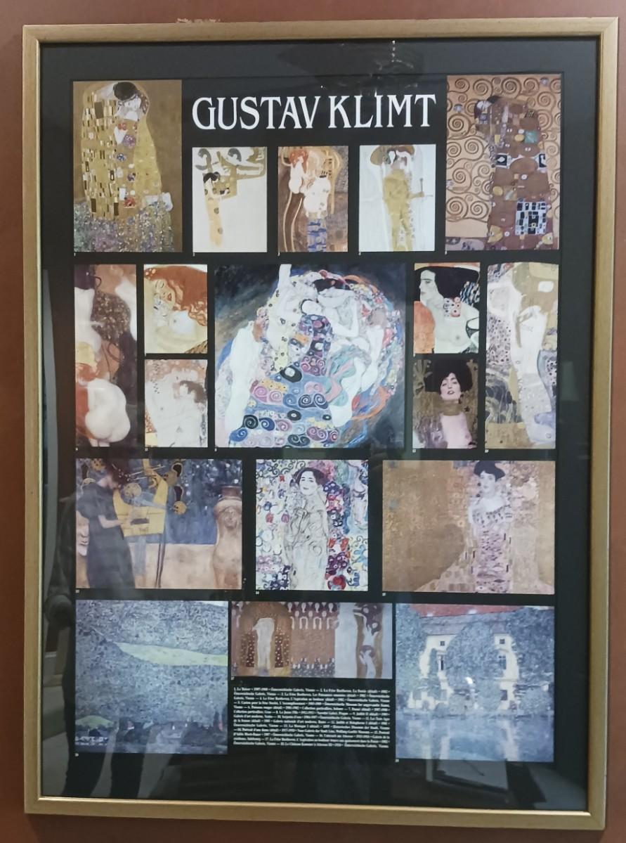 Professionally framed poster collage of Gustav Klimt's art work. 32 1/2" wide 44 1/2" hgth