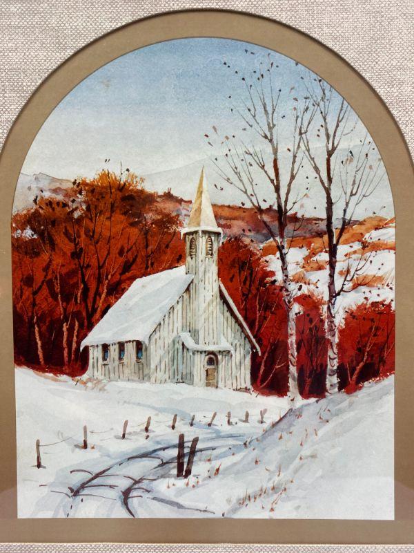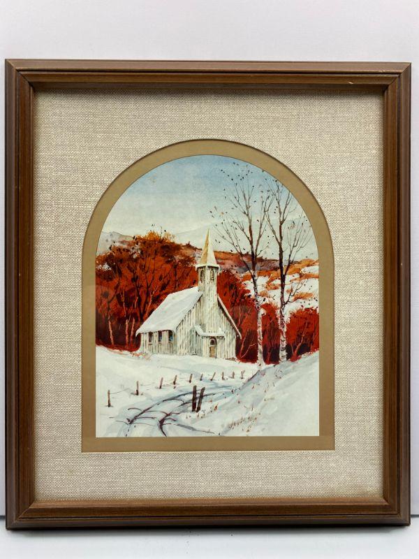 Framed Print Church in snow.  Unkown artist