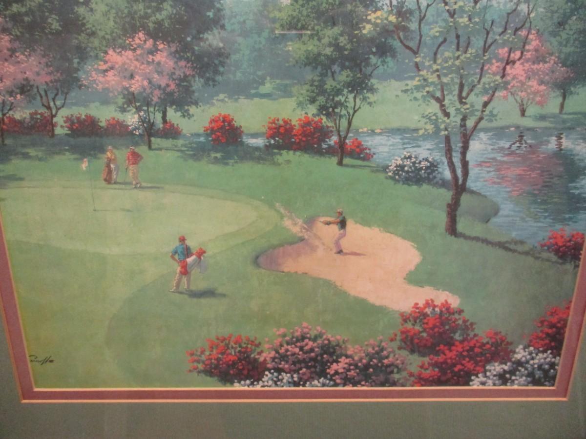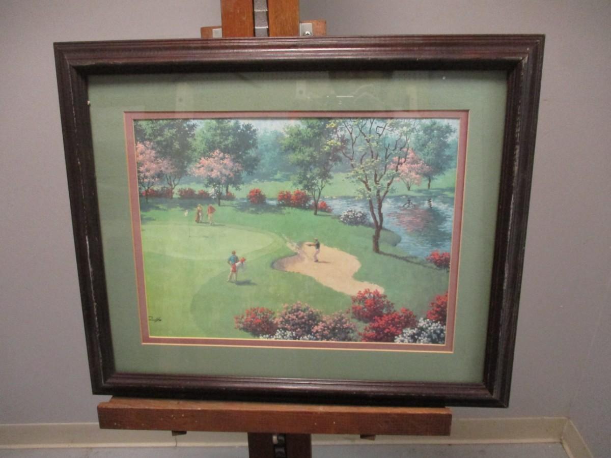 Framed Print Golf Player Out Of Sand Trap Signed Art Sarnoff Approx 22 1/4" x 18 1/4"