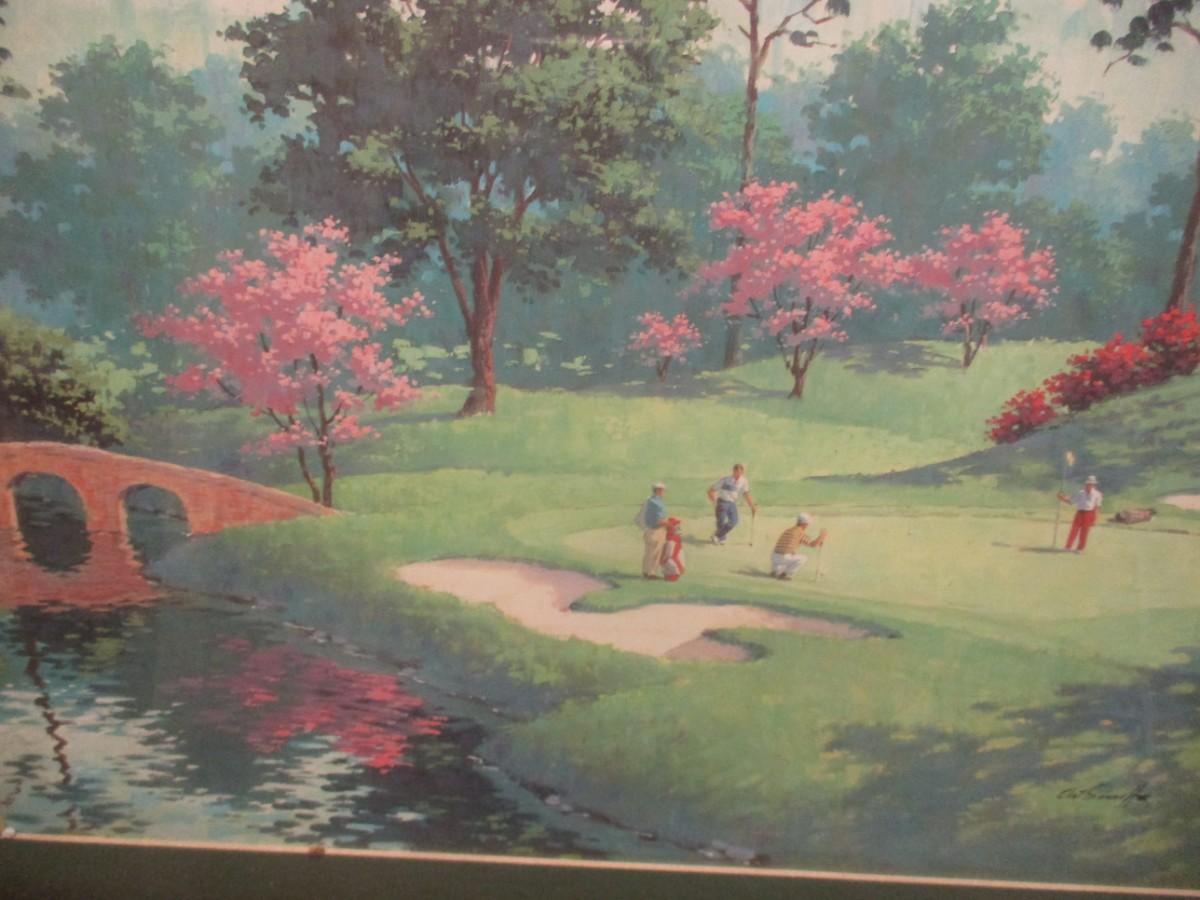 Framed Print Golf Players Signed Art Sarnoff Approx 22 1/4" x 18 1/4"