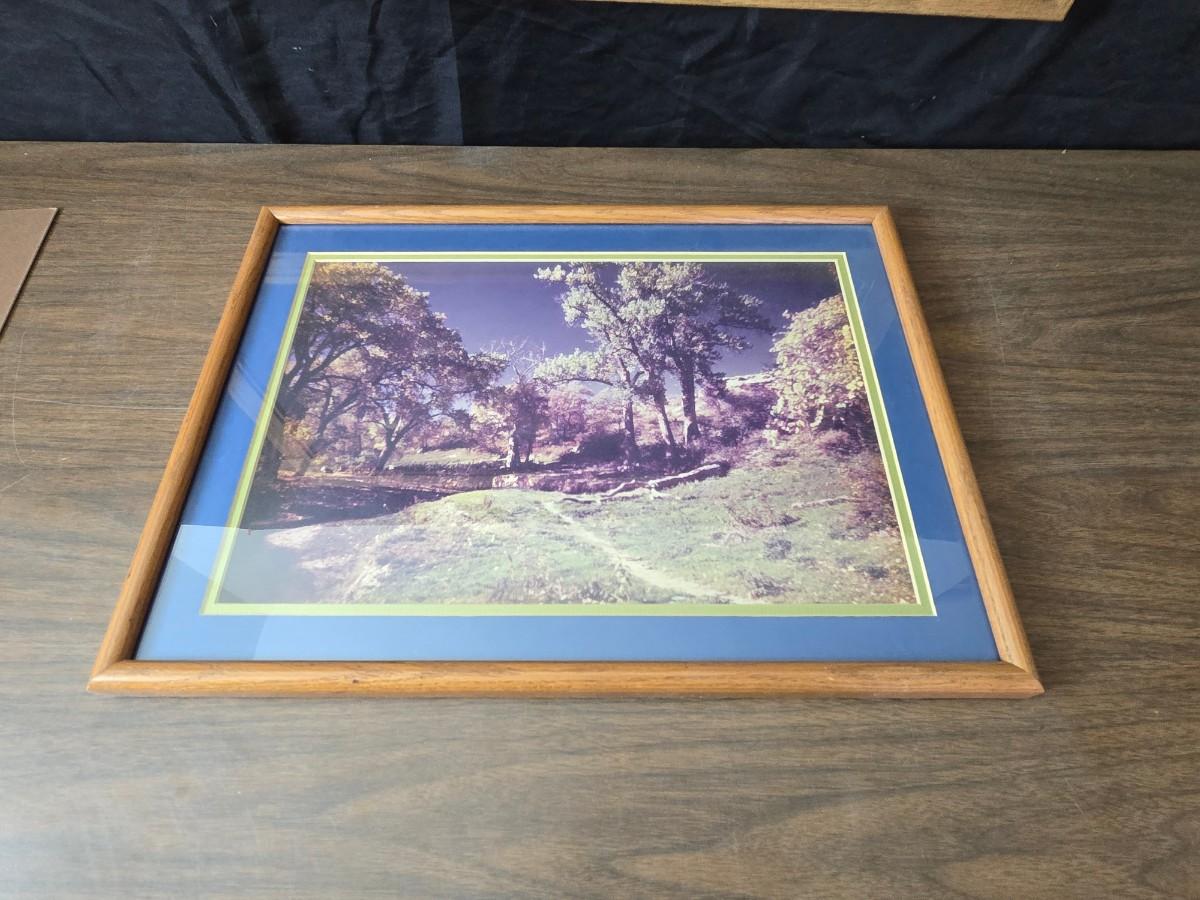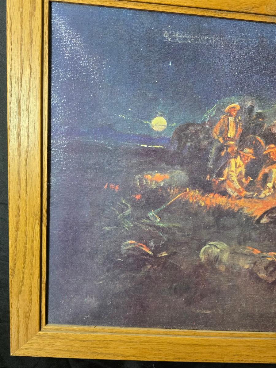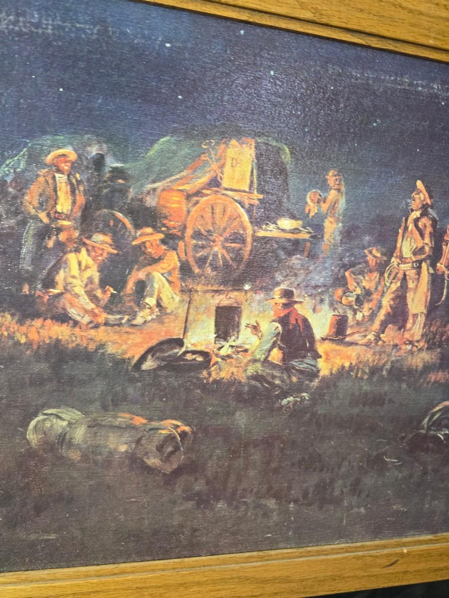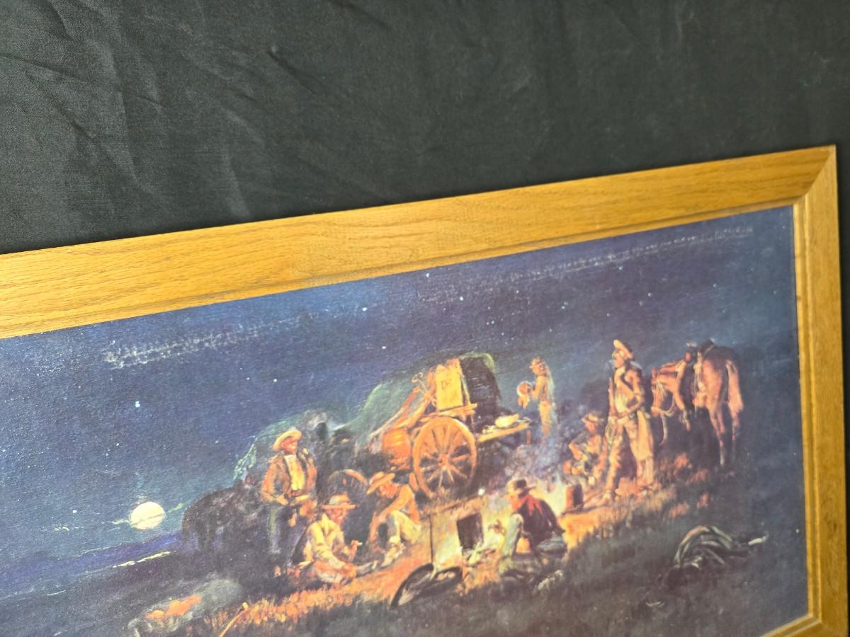 Framed print Laugh Kills Lonesome by artist Charles Marion Russell. with two other pieces of artwork