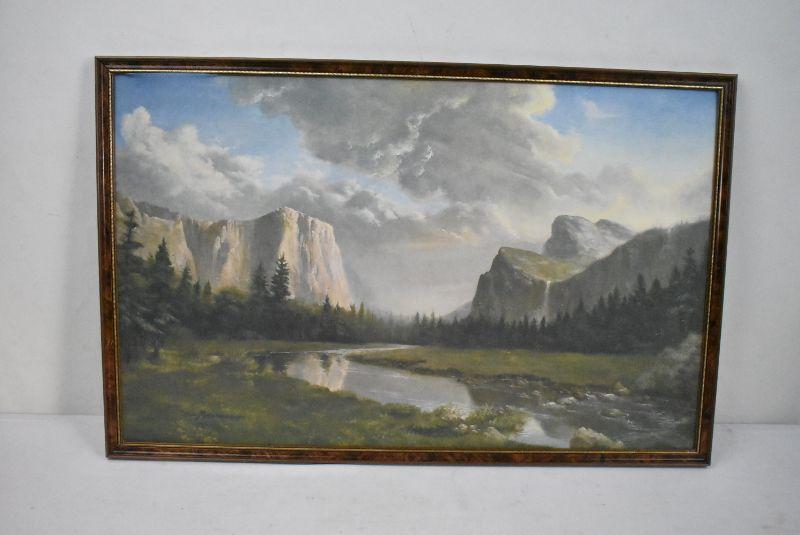 Framed Print, Mountains/Pond/Clouds by Dino Massaroni, "US Commemorative Fine Art Gallery" - Plastic Frame, No Glass