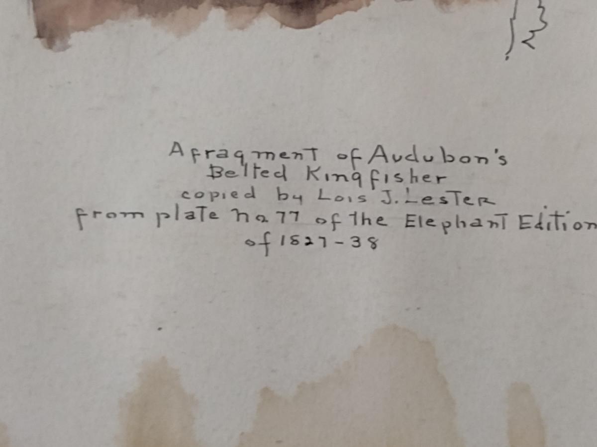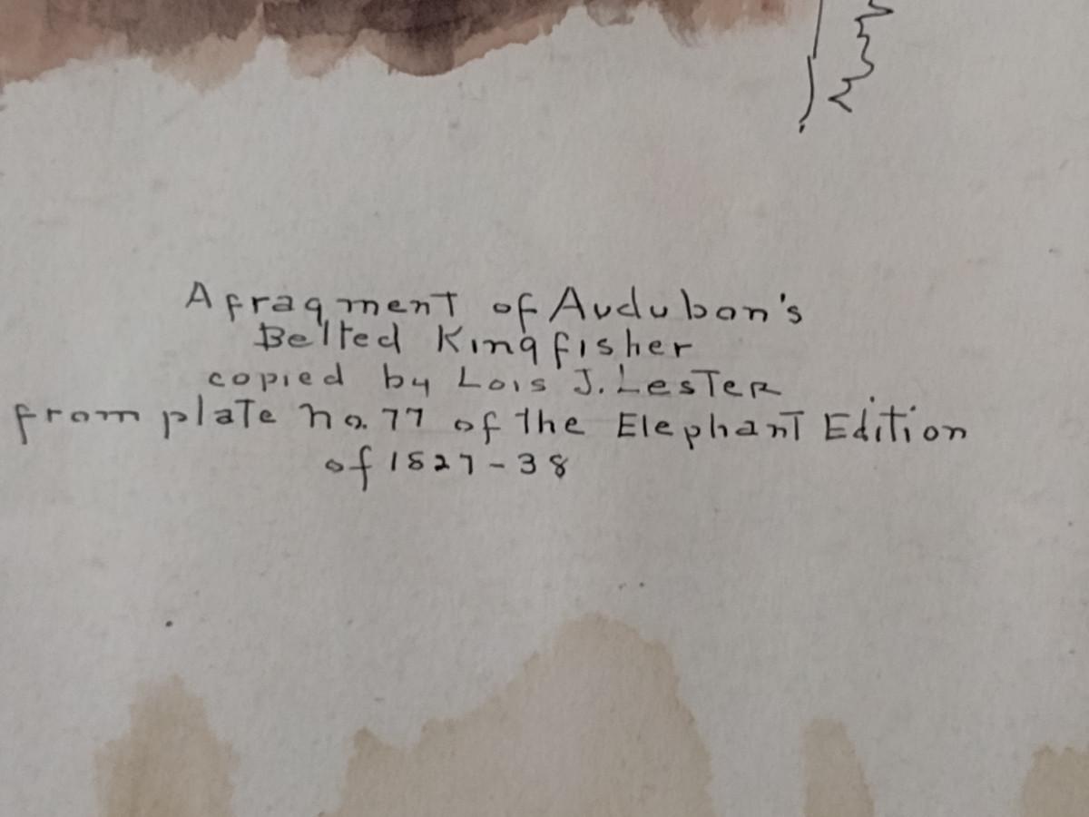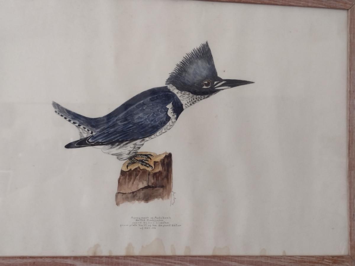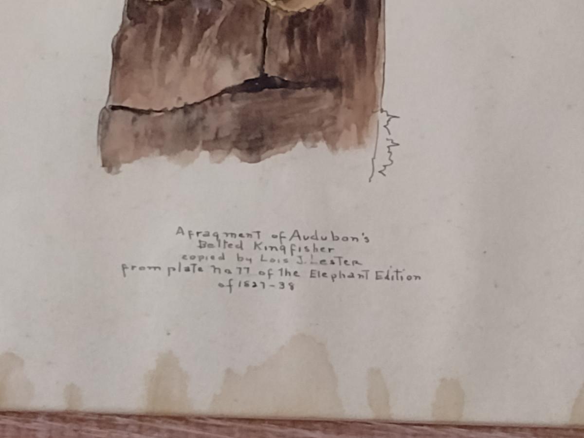 Framed Print of Belted Kingfisher- Approx 23 1/2" X 15 1/2". Item has foxing and wear.