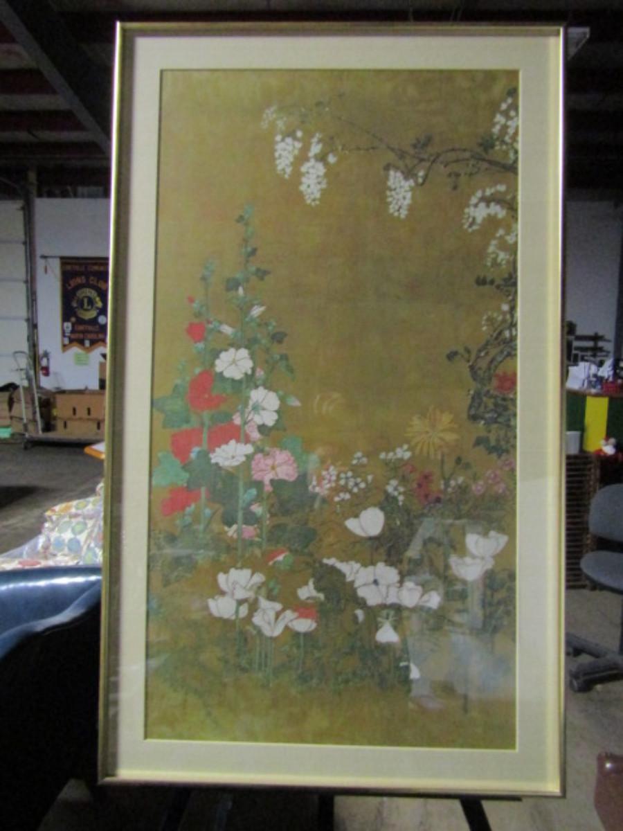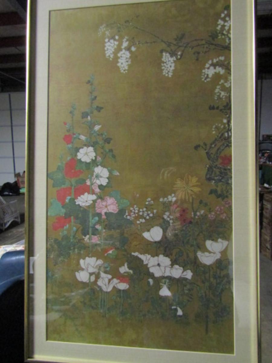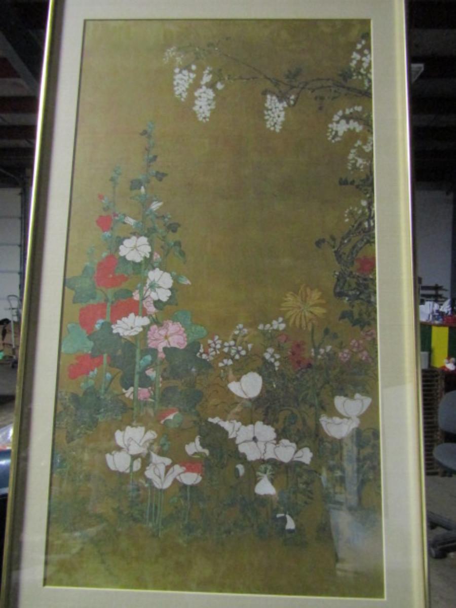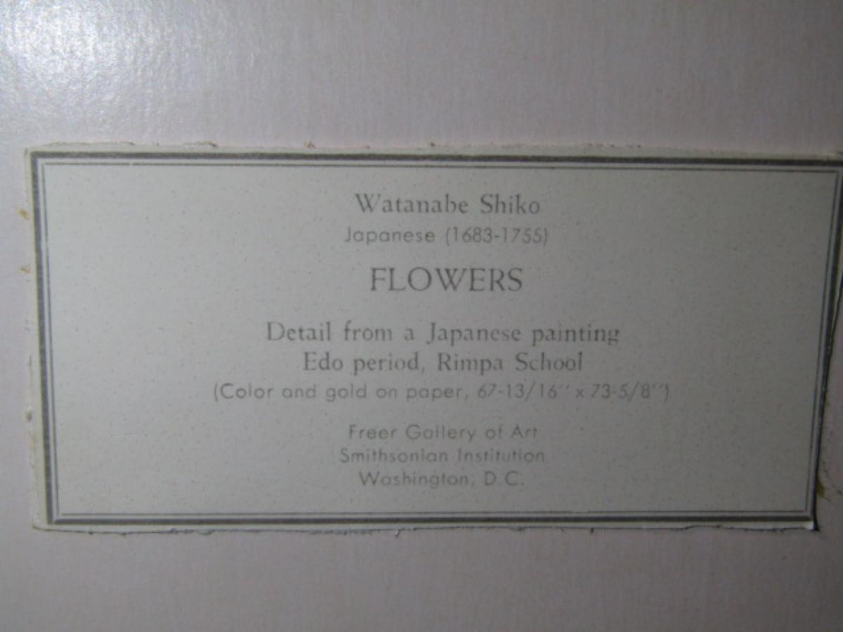 Framed Print of 'Flowers' by Watanabe Shiko- Detail from a Japanese Painting from the Edo Period:  Approx 37" x 22"