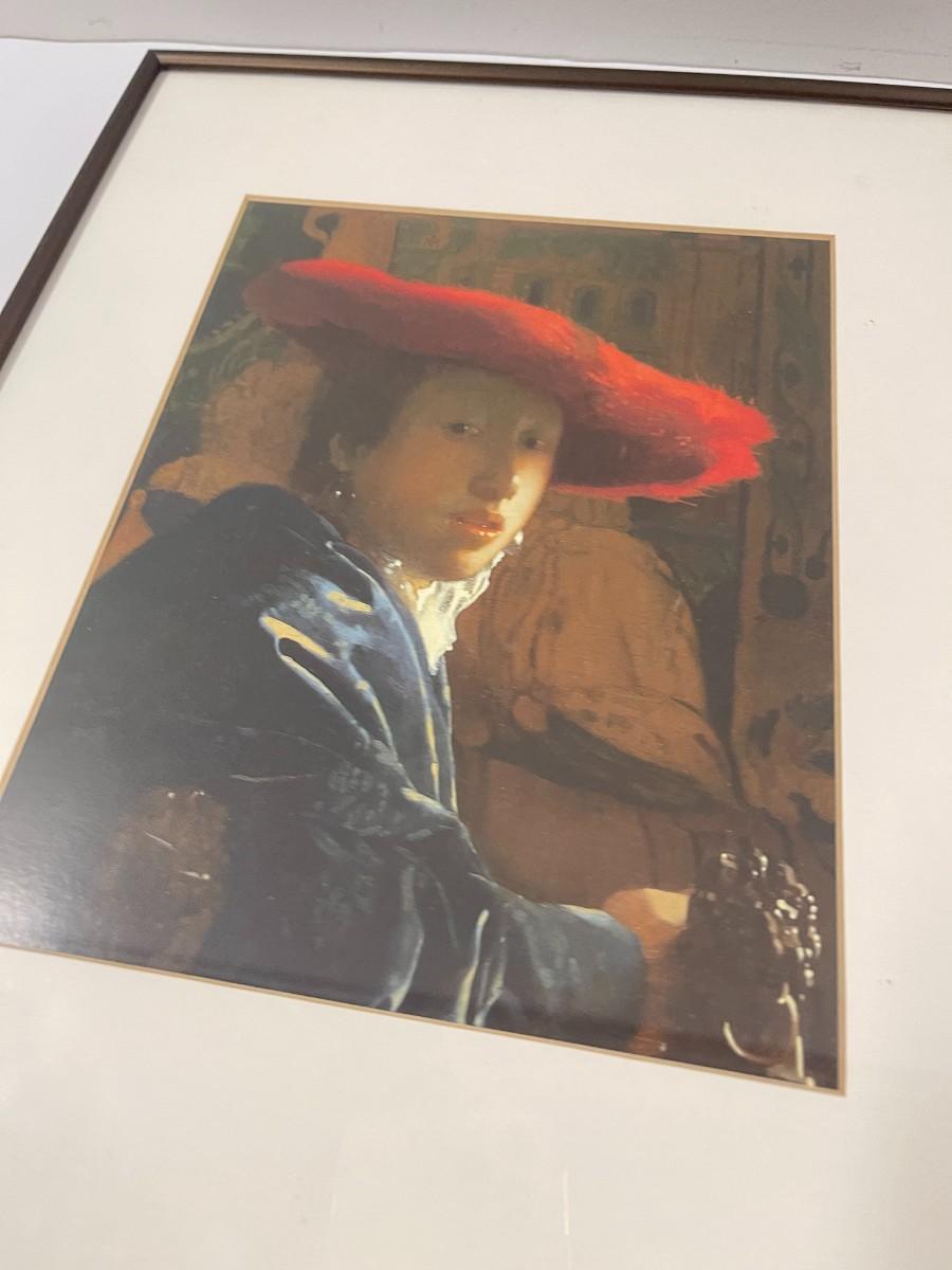 Framed print of Girl With a Red Hat by Jan Vermeer. Excellent condition. Framed size: 11" x 14"; image 7" x 9".