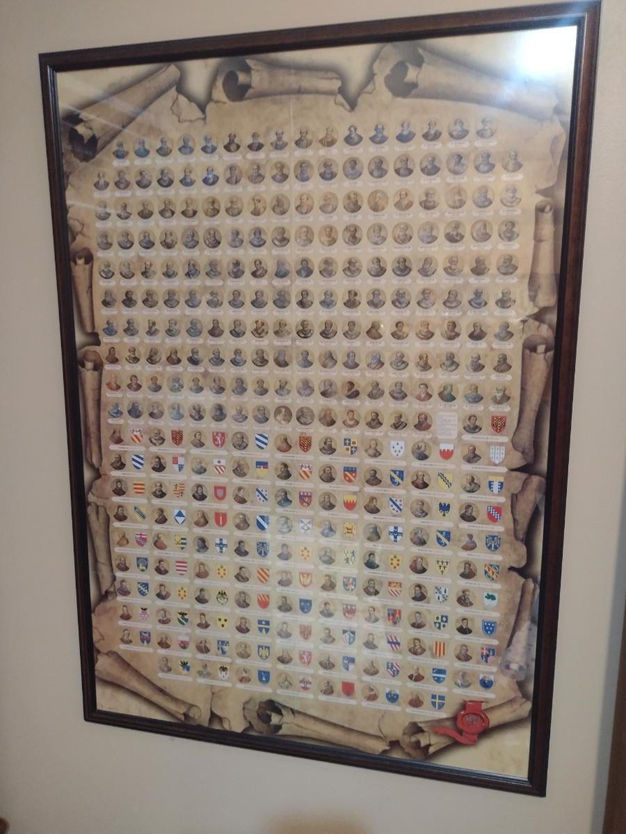 Framed Print of Historical Lineage of Catholic Popes. Measures approx 39 1/2" x 28".