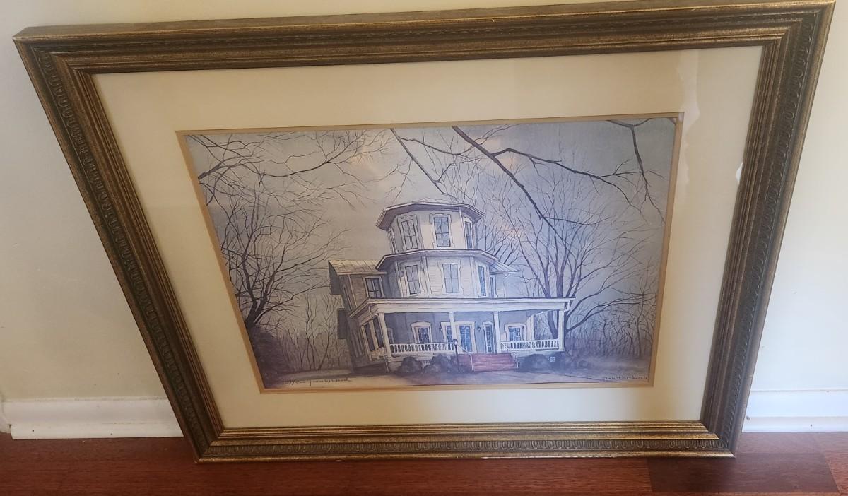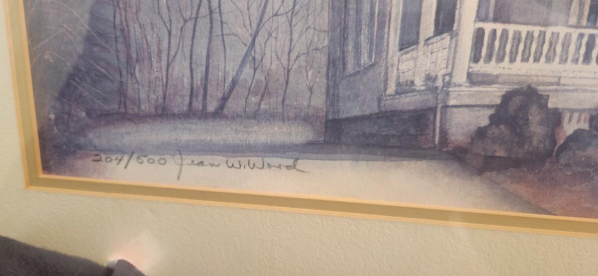 Signed and Numbered 204/500 Jean W. Wood, Local Artist, Framed Print Of House 34" X 27" painted in 1976