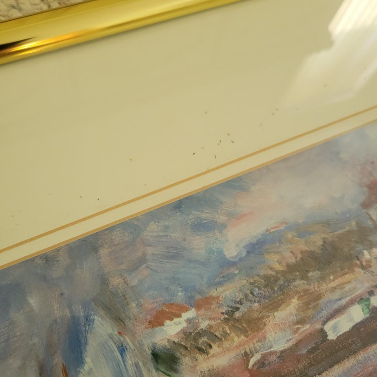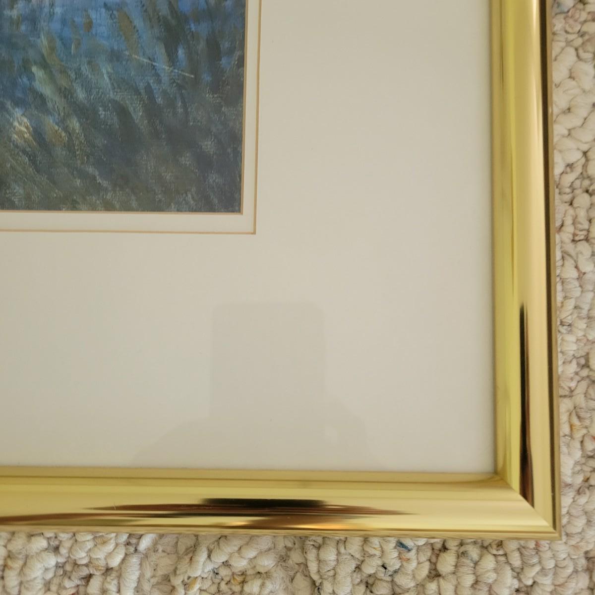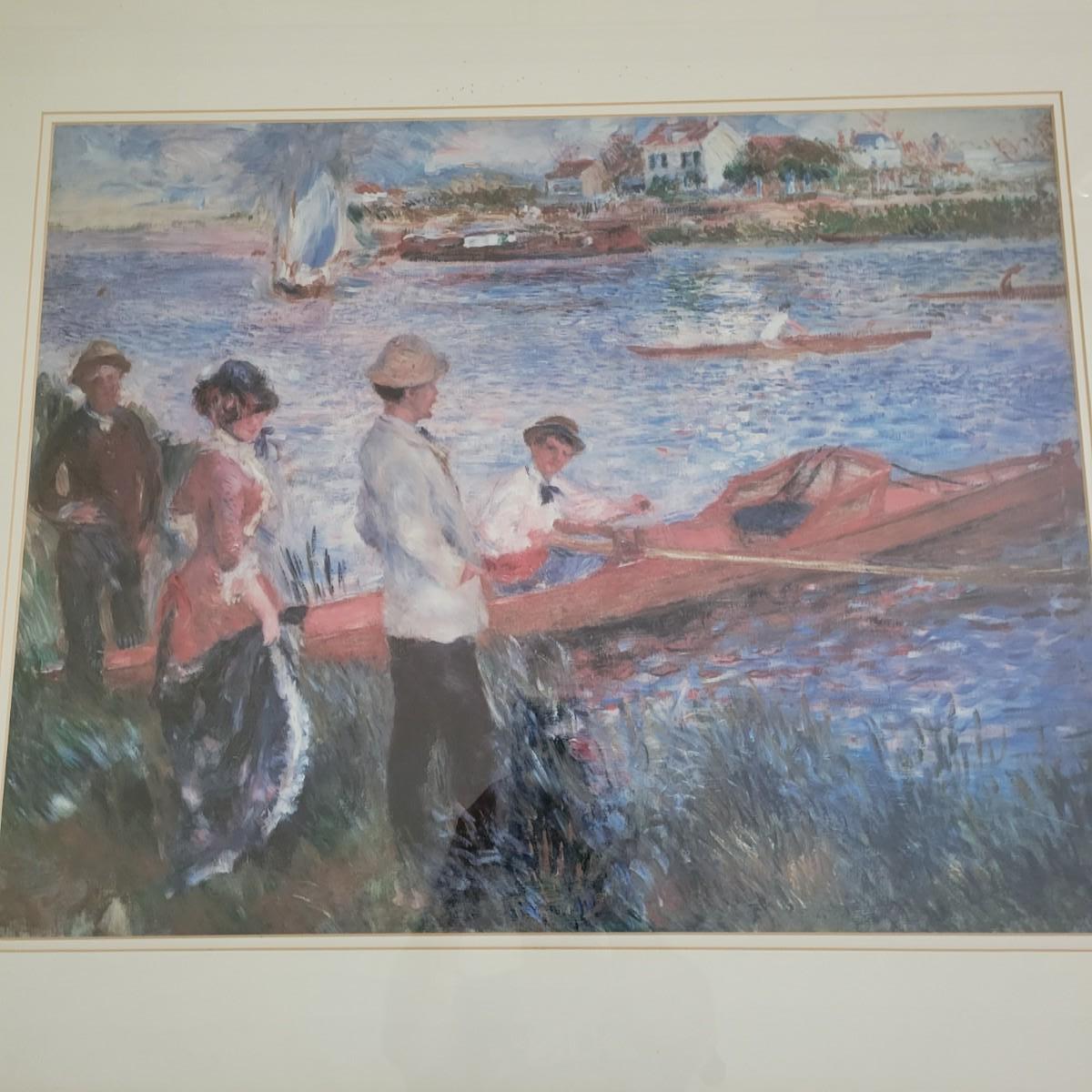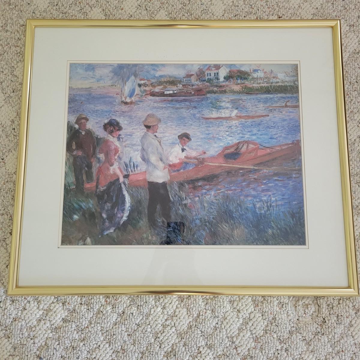 A framed print of "Oarsman" by Renoir. This piece is double matted in white mats with a gold colored aluminum frame. There is some minor speckling on the matting. It measures approximately 31.5" x 1" x 27"H. Shipping available. Shipping art can be costly. We suggest contacting our preferred local shipping provider, Postage Express, with dimensions and getting an estimate before bidding: (828) 670-5501 or postageexpress@yahoo.com.