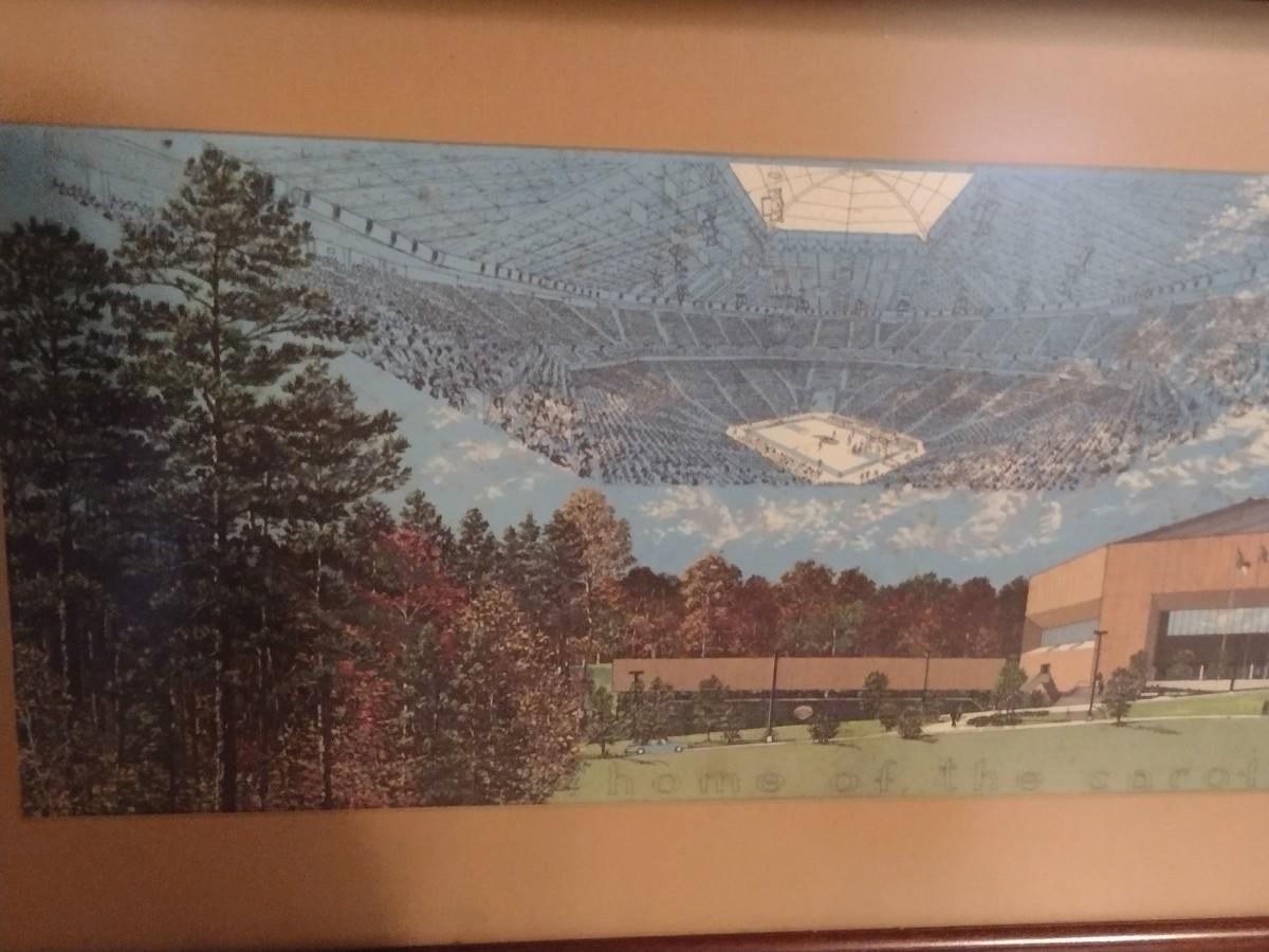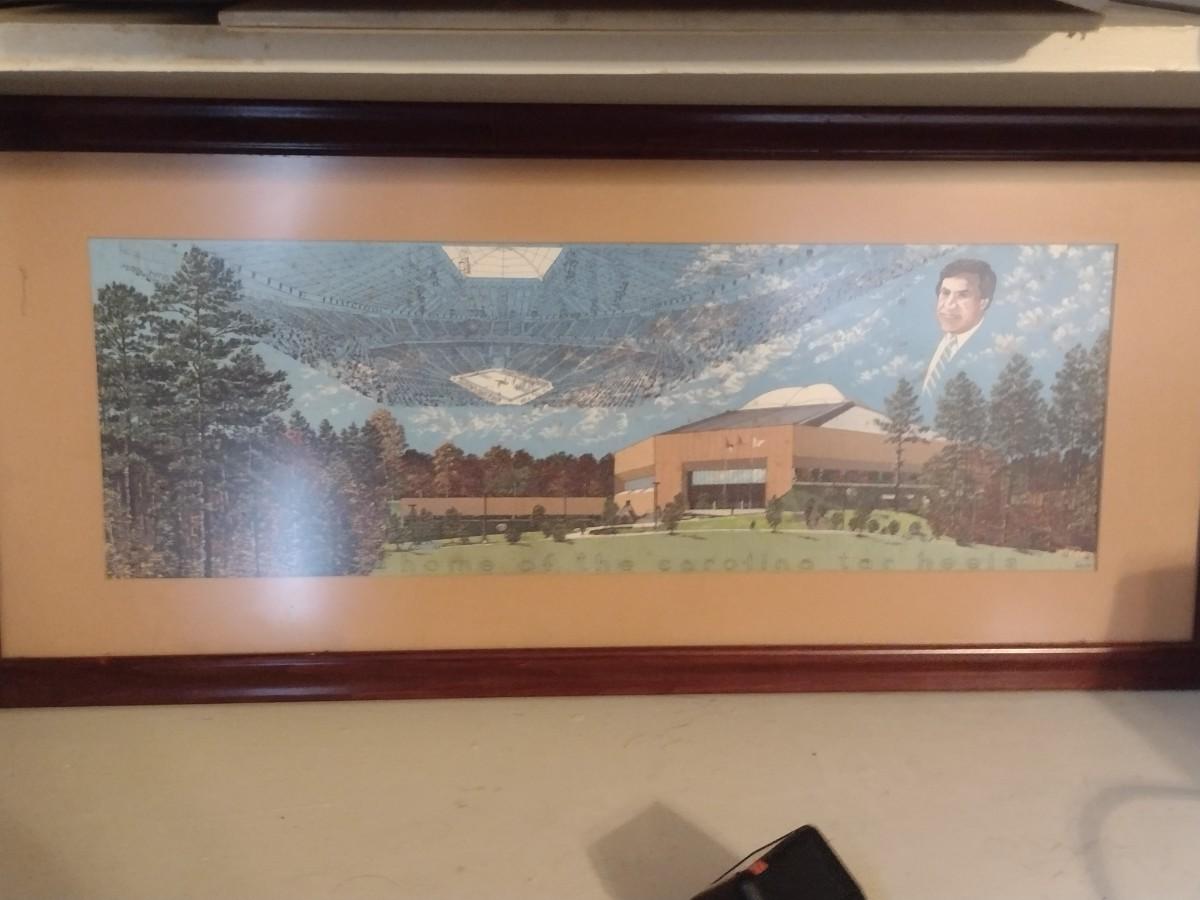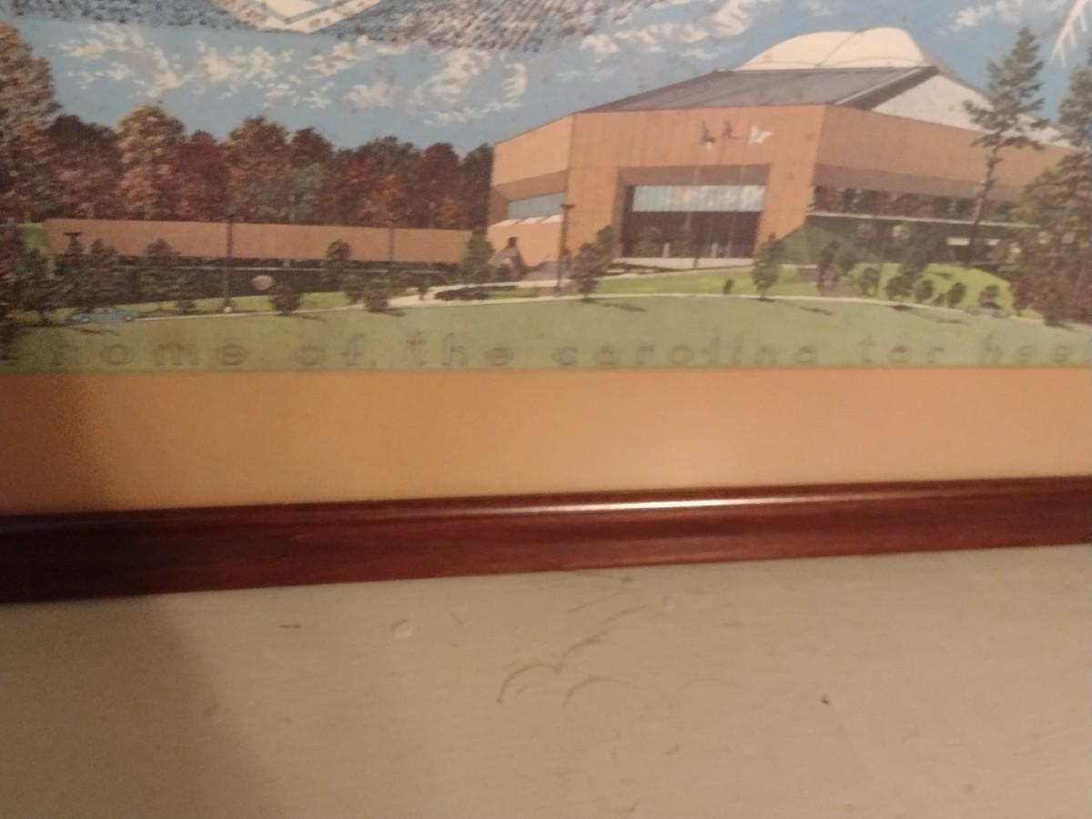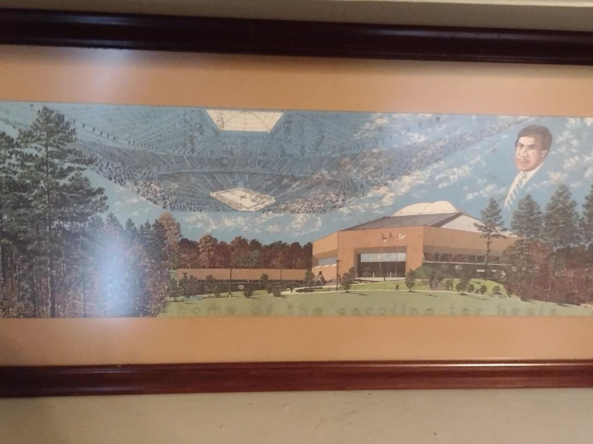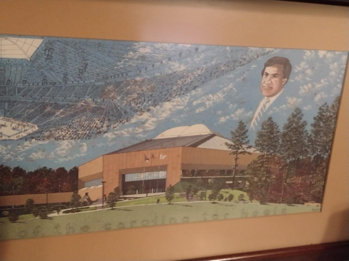 Framed Print of University of North Carolina Sporting Arenas Dean Smith Portrait in Background