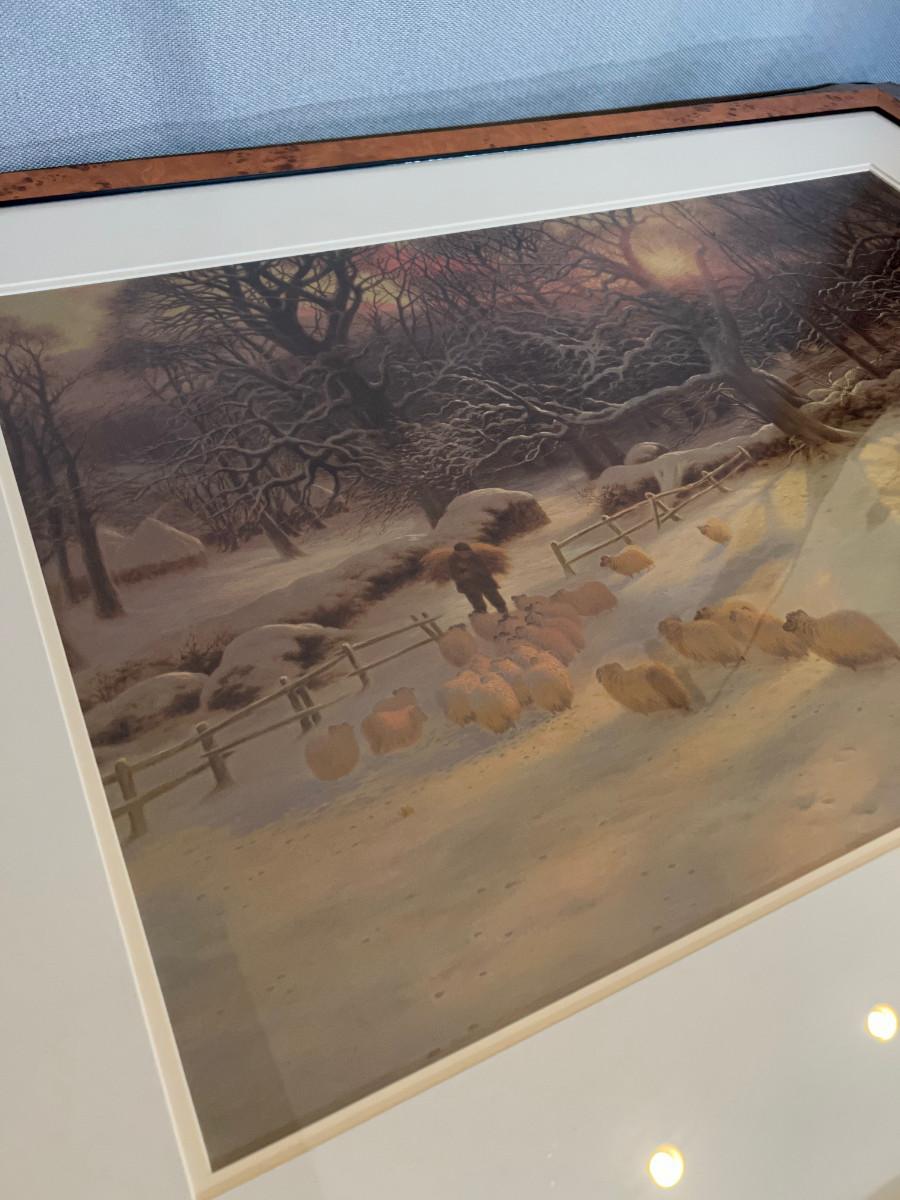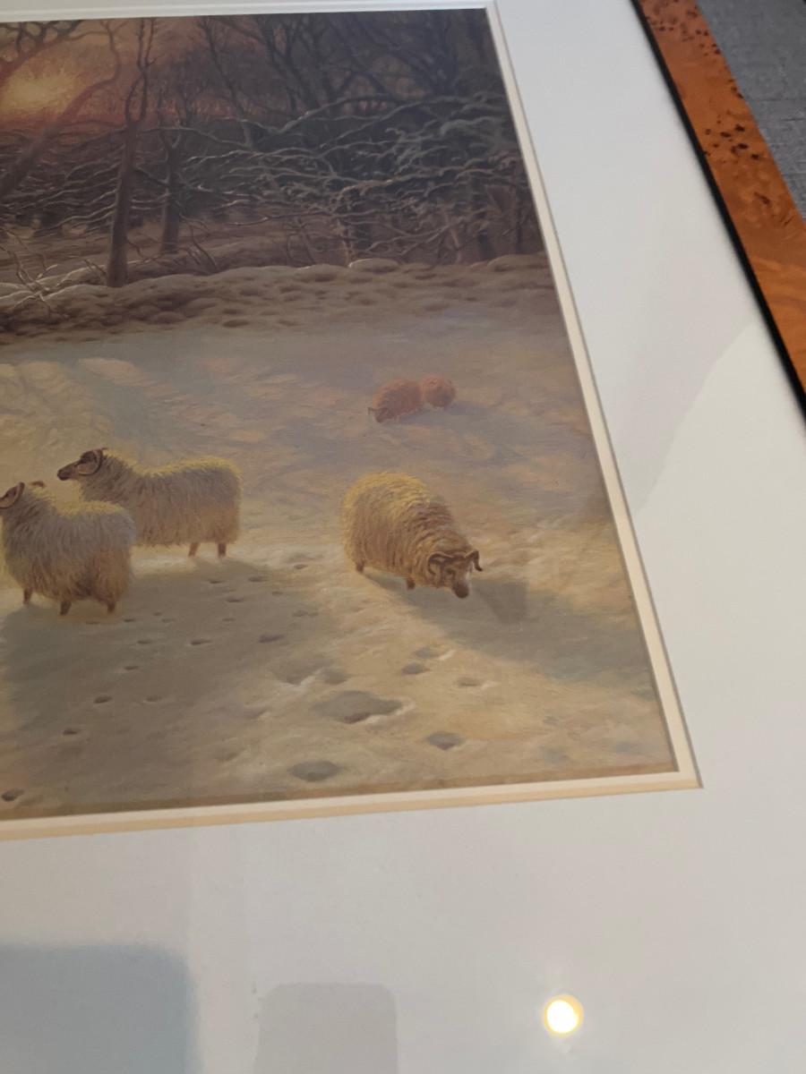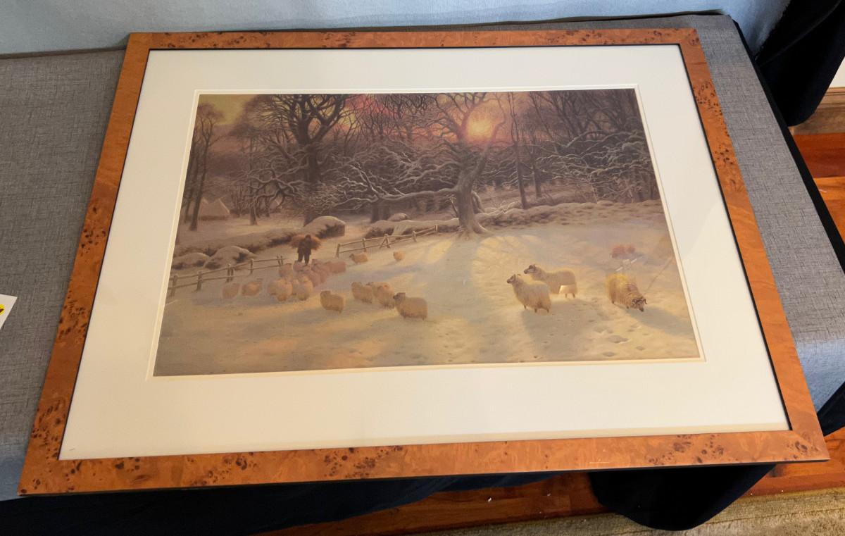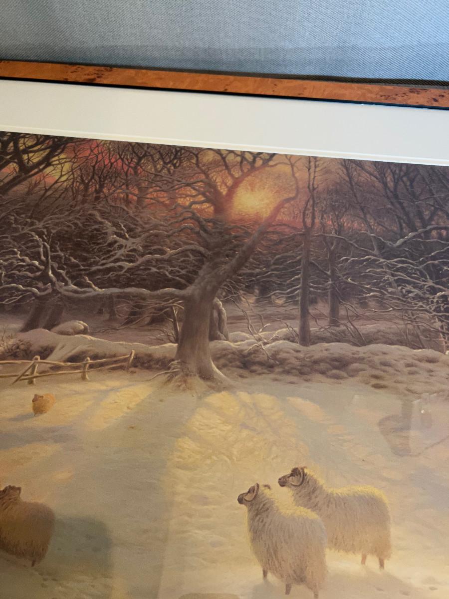Framed Print SHEEP IN WINTER Birds Eye Maple Frame