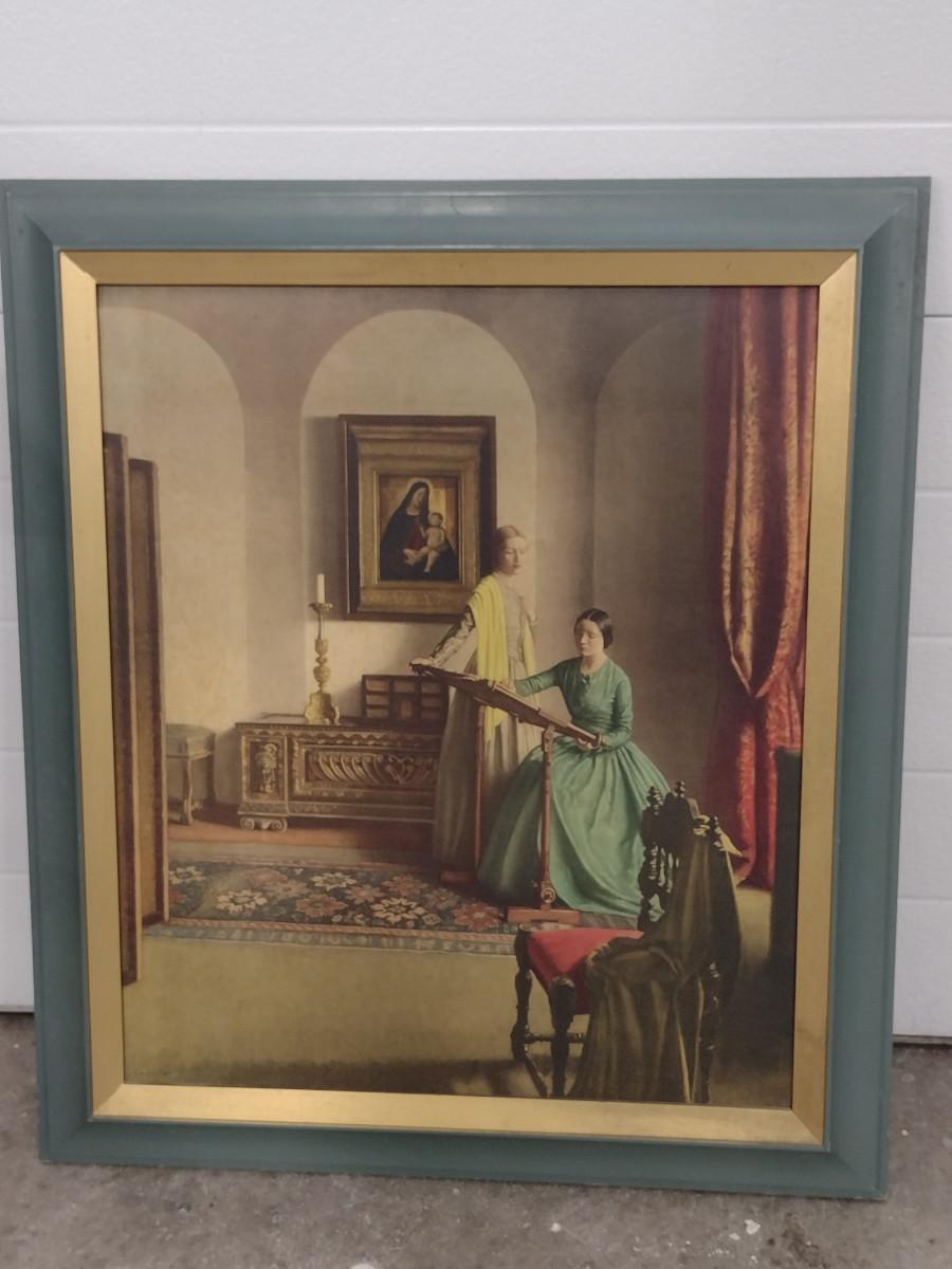 Framed Print 'The Sampler' by Leonard Campbell Taylor- Approx 22 1/2" x 25 3/4"