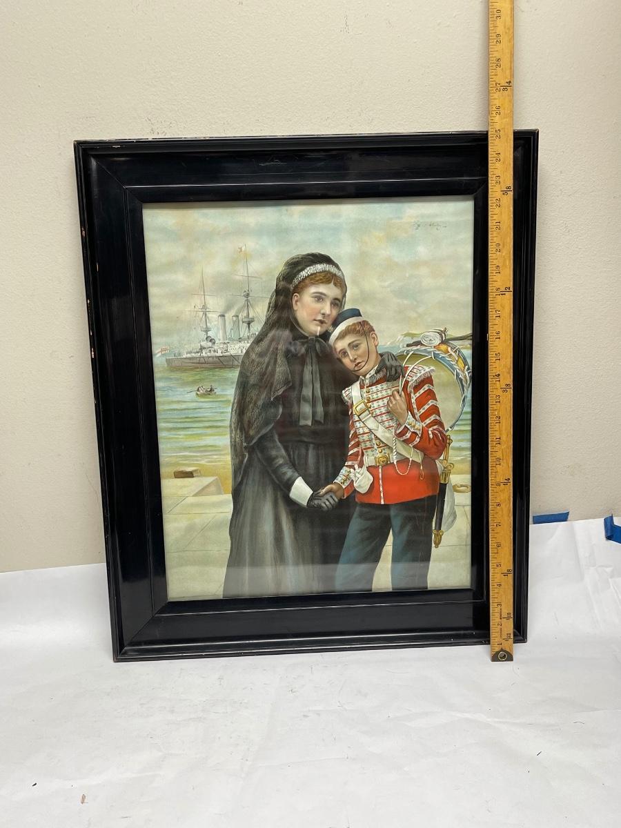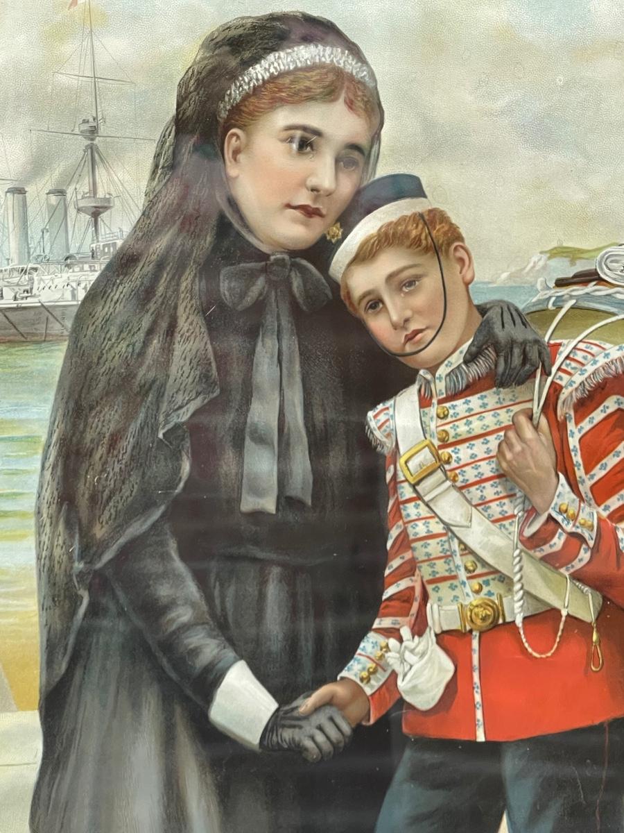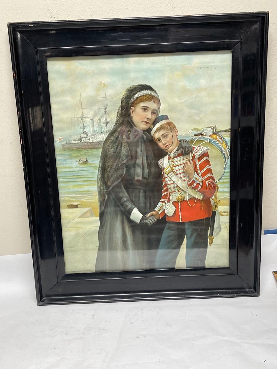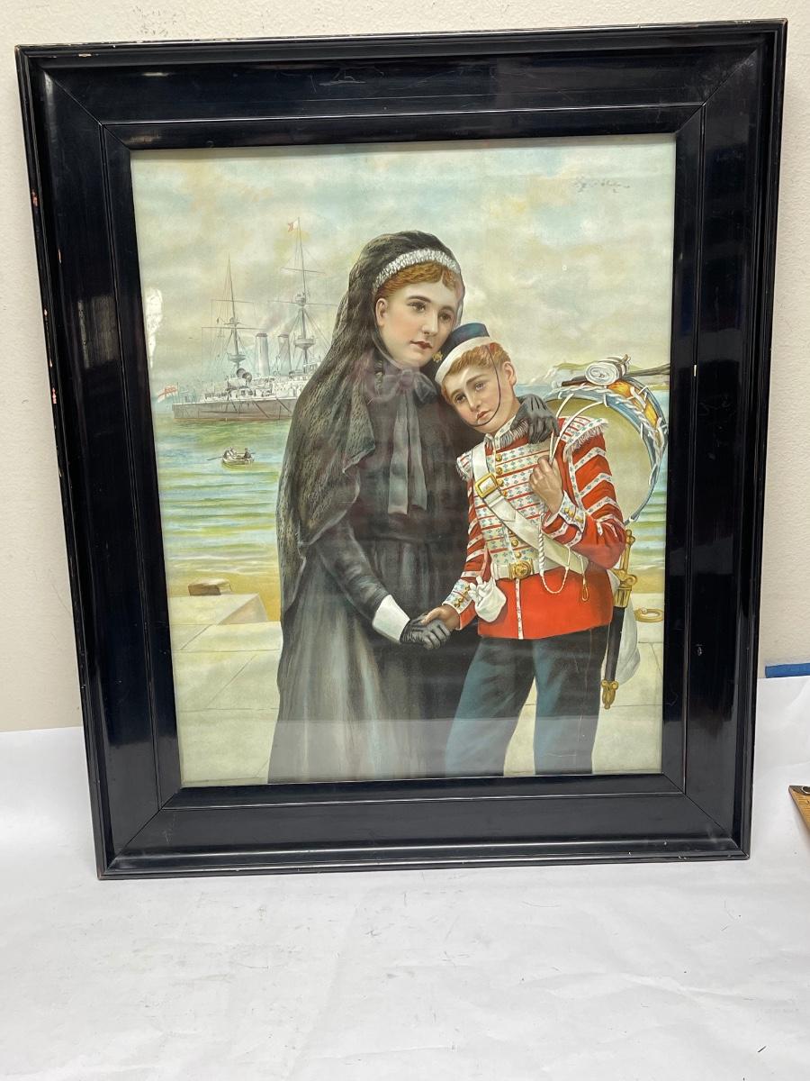 Framed Print Woman in Mourning with young man dressed in military uniform