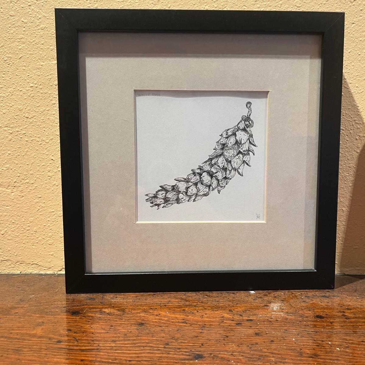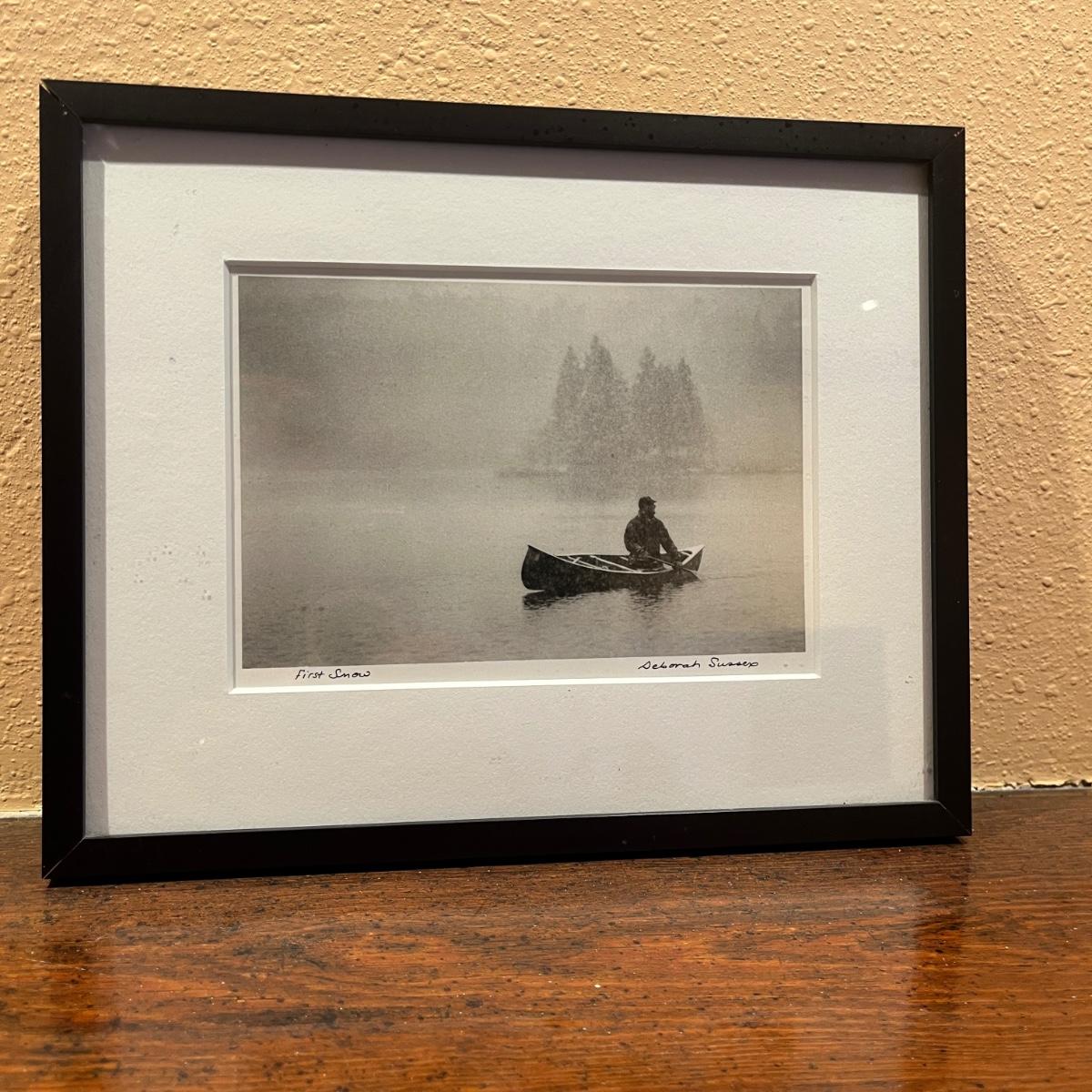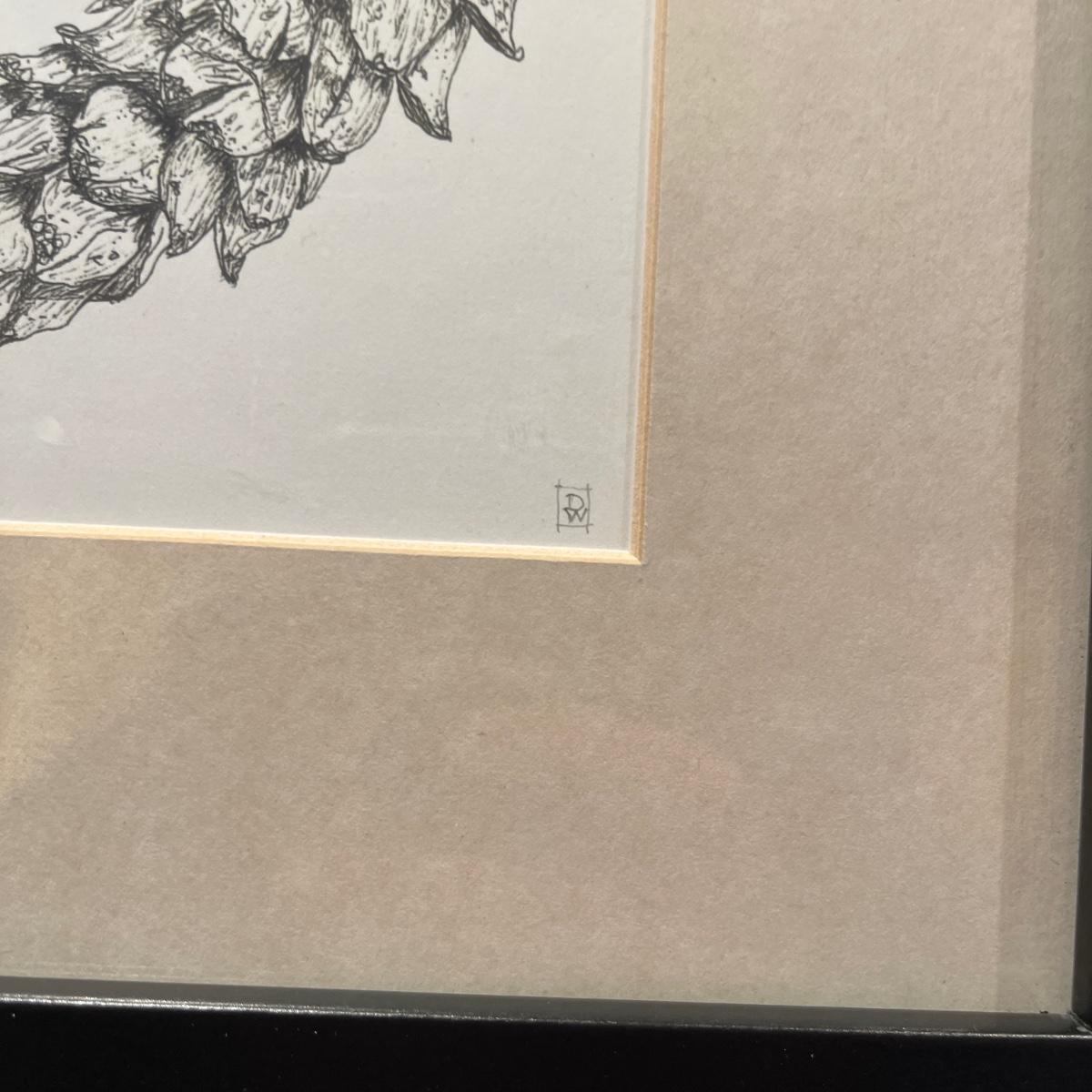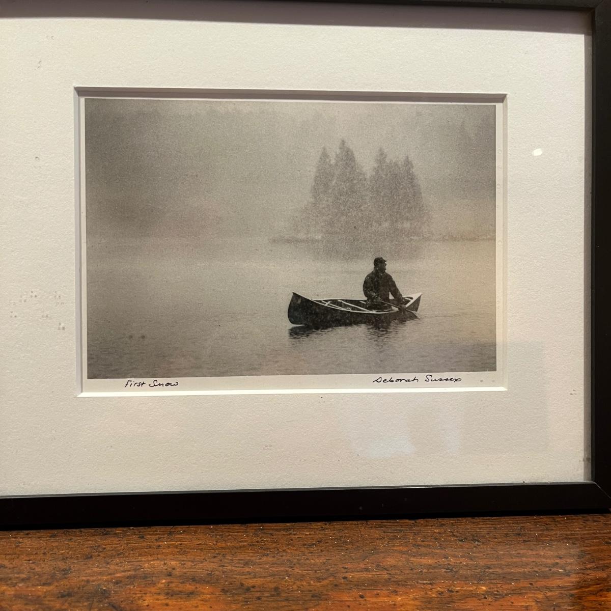 Lot includes a metal framed silver print by Deborah Sussex titled “First Snow" and a plastic framed printed drawing by Donna Wahmann titled “White Pine”. This piece is pencil-signed. Both are under glass. Largest frame measures 10” x 1.75” x 10”H.