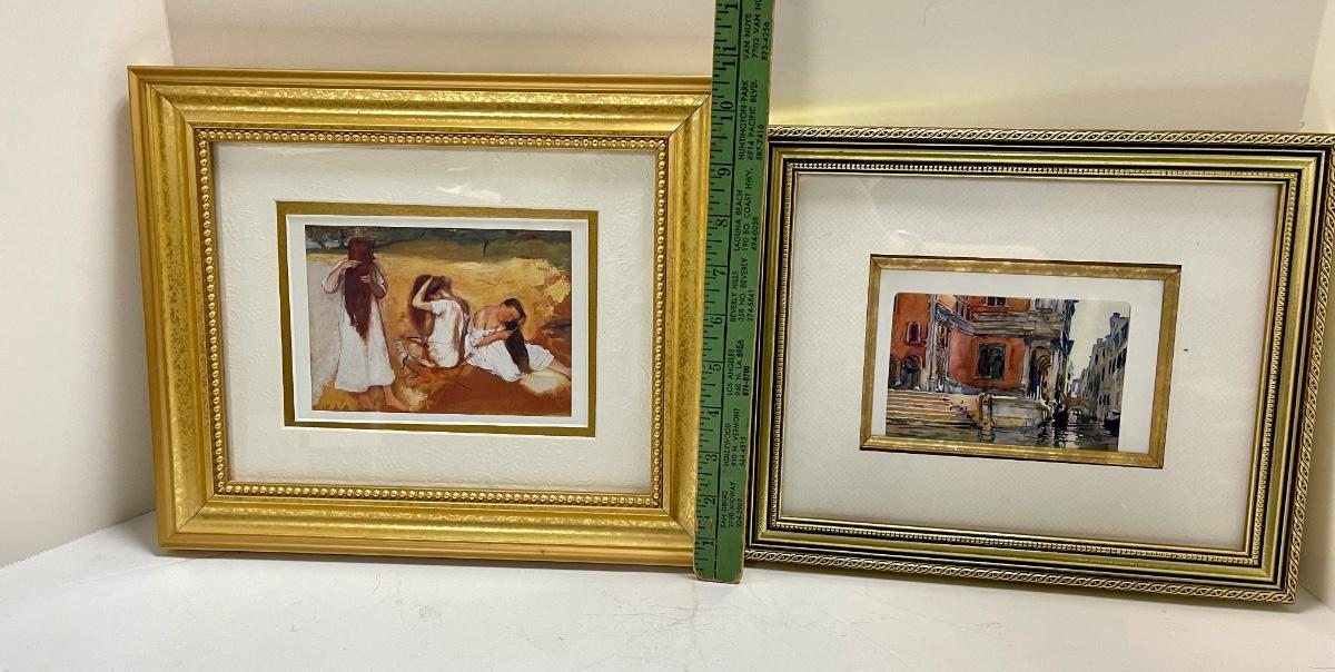 Pair of Small Framed Art Prints Gold Wood Frames Under 12"