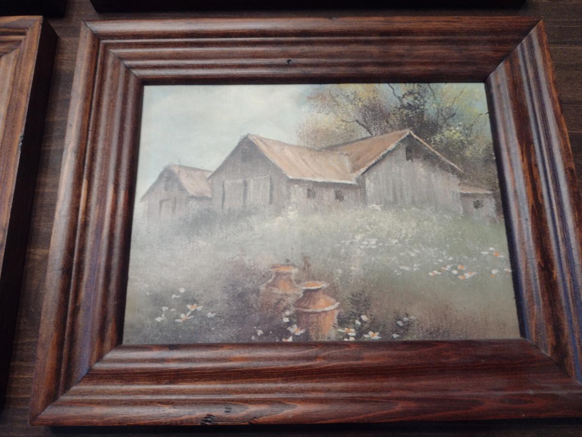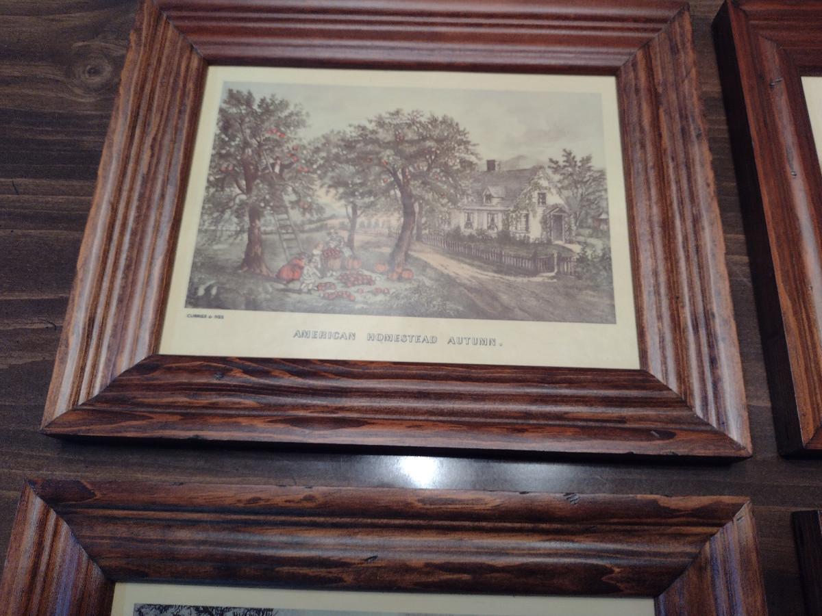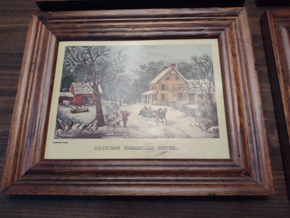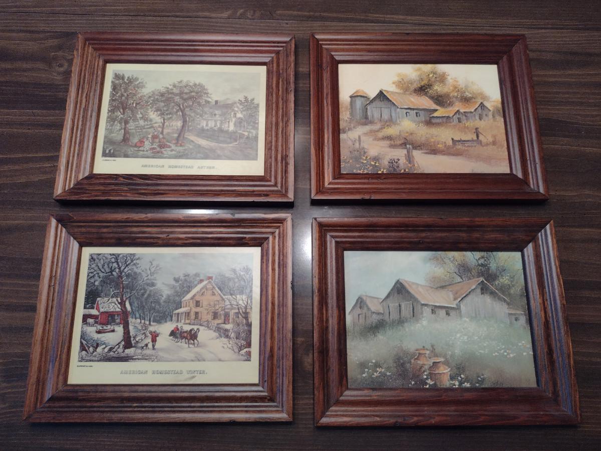 Framed Prints- Two Farm/Barn and Two Currier & Ives- Approx 10" x 8 1/4"
