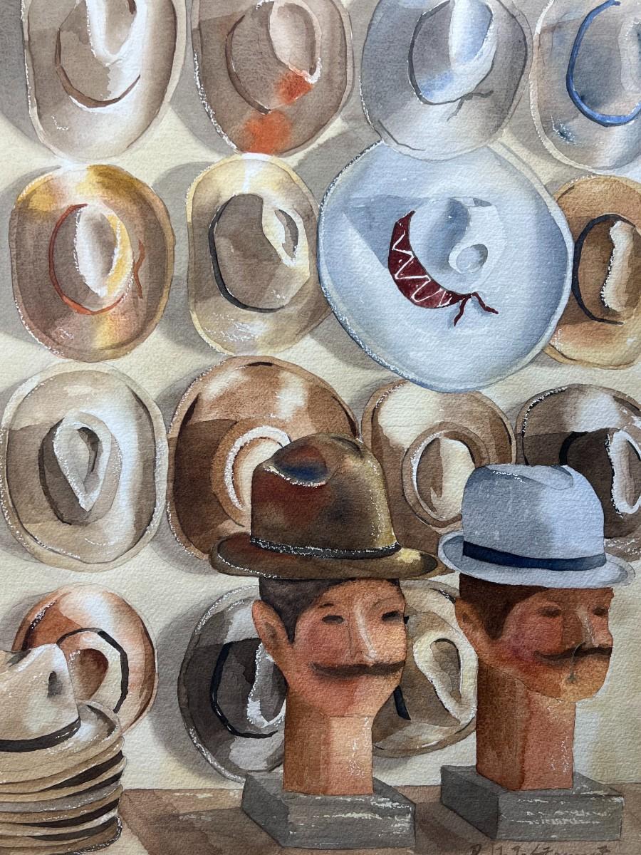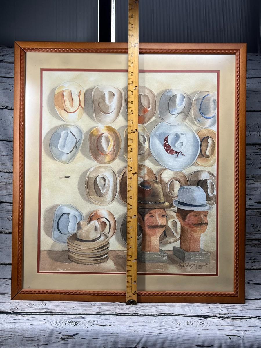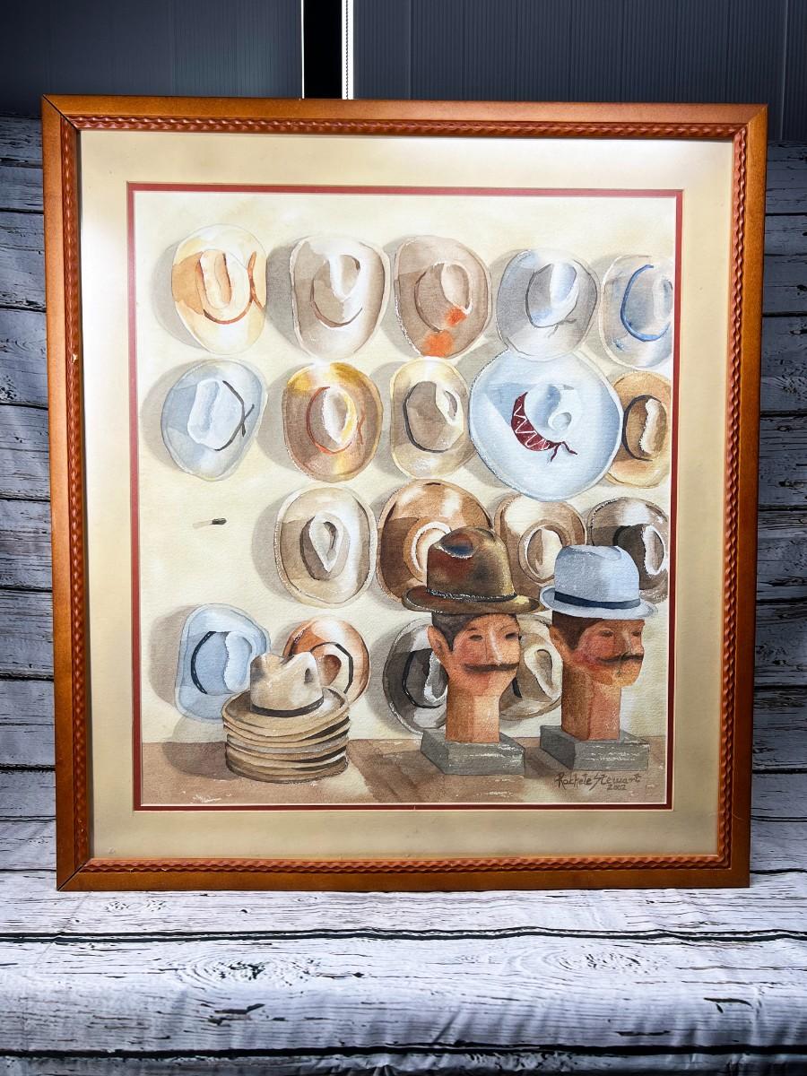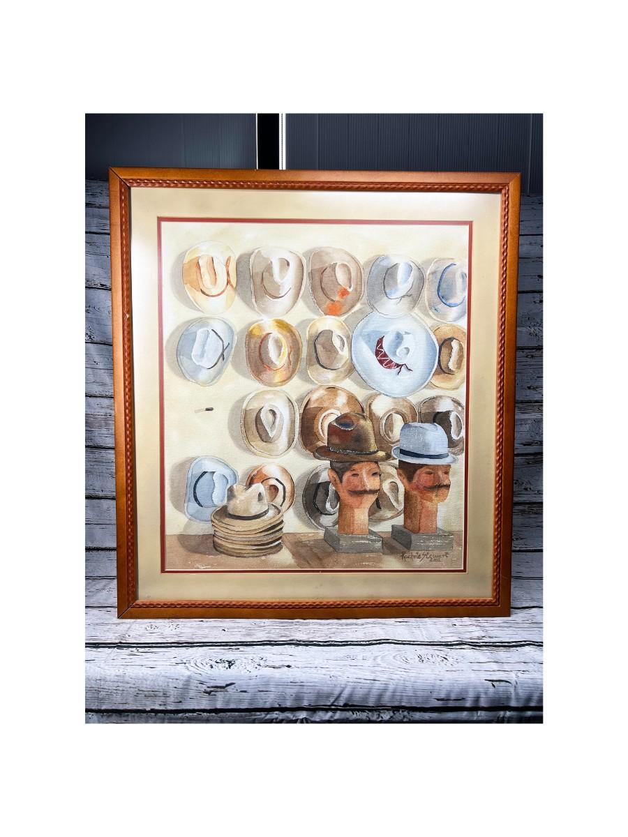 Framed Rachele Stewart Home Decor Art Watercolor of Hat Display