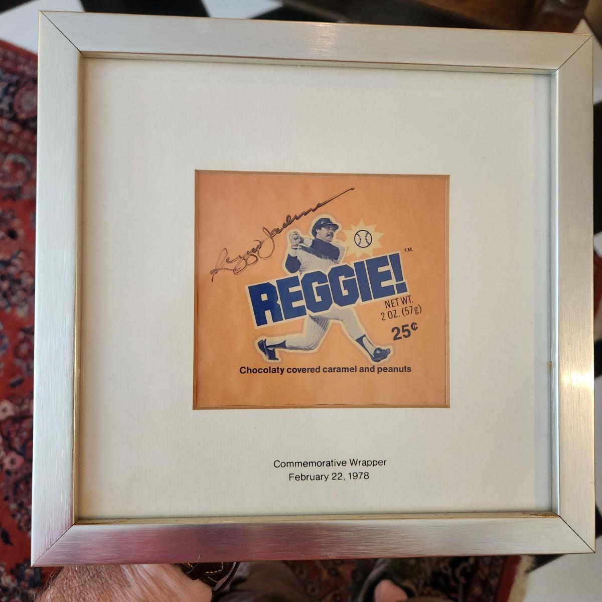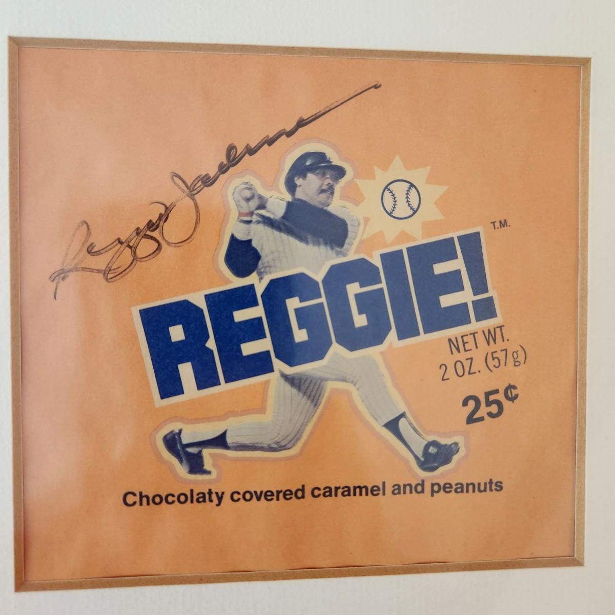 Framed Reggie Candy Wrapper signed by Reggie Jackson