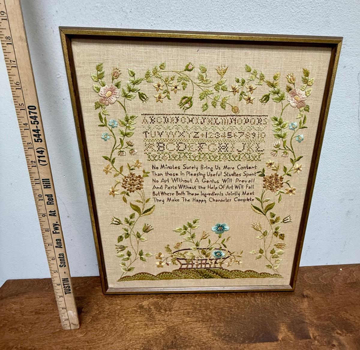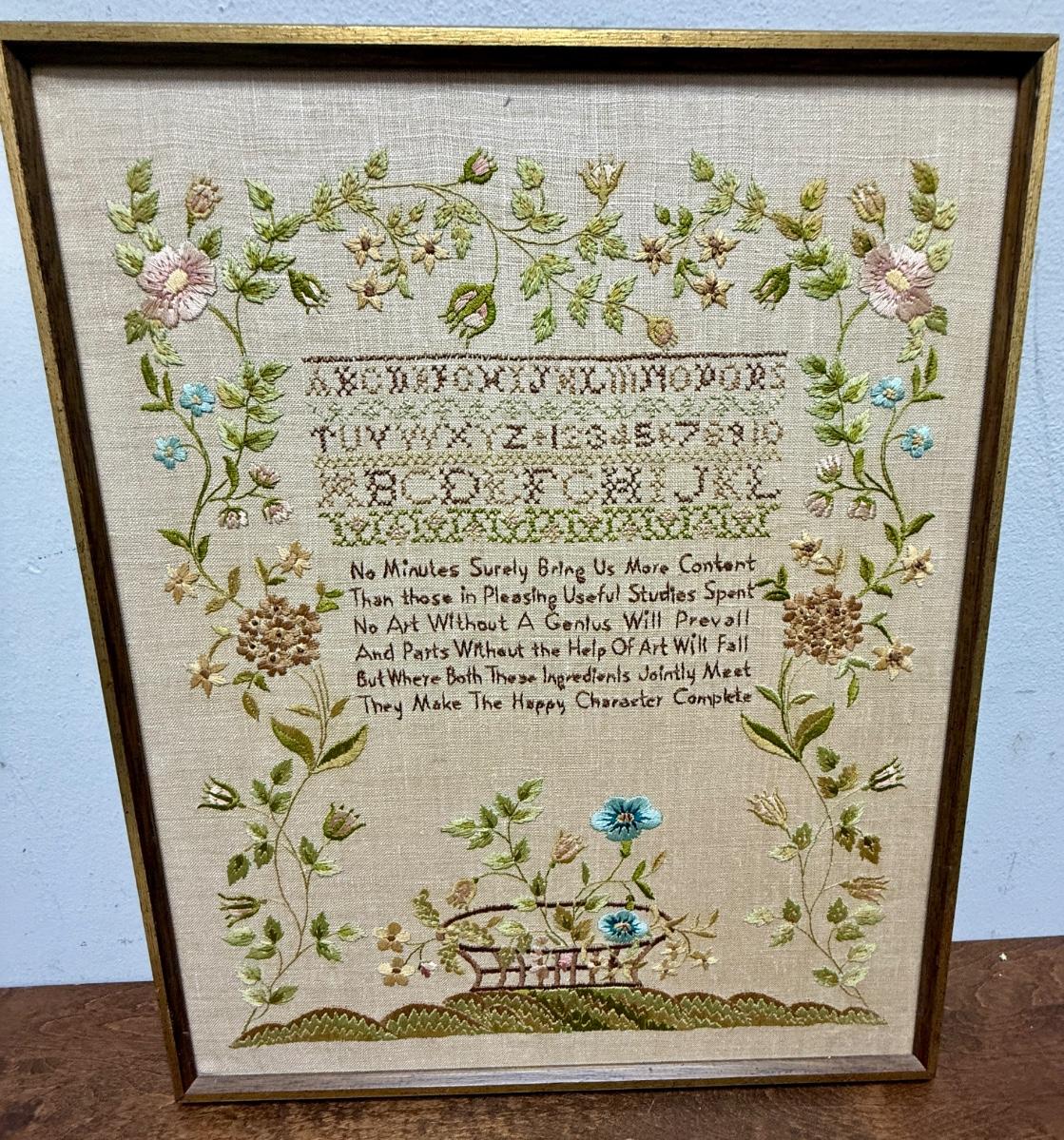 Framed Reproduction sampler titled “Sarah. Boston 1815” by Hands Across the Sea Samplers