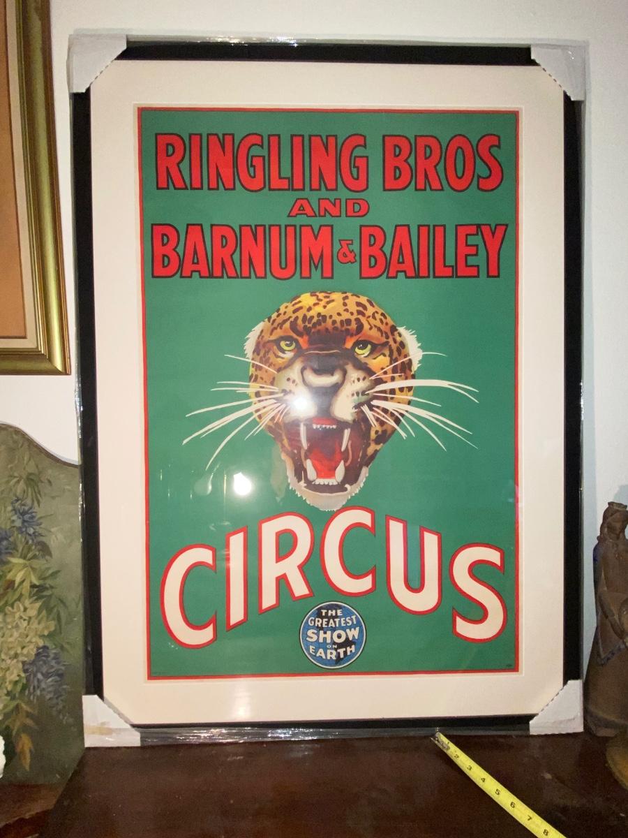 Framed Ringling Bros and Barnum and Bailey litho, New still sealed in plastic with corner protectors. Approx 46L by 35W