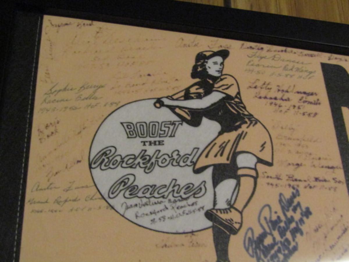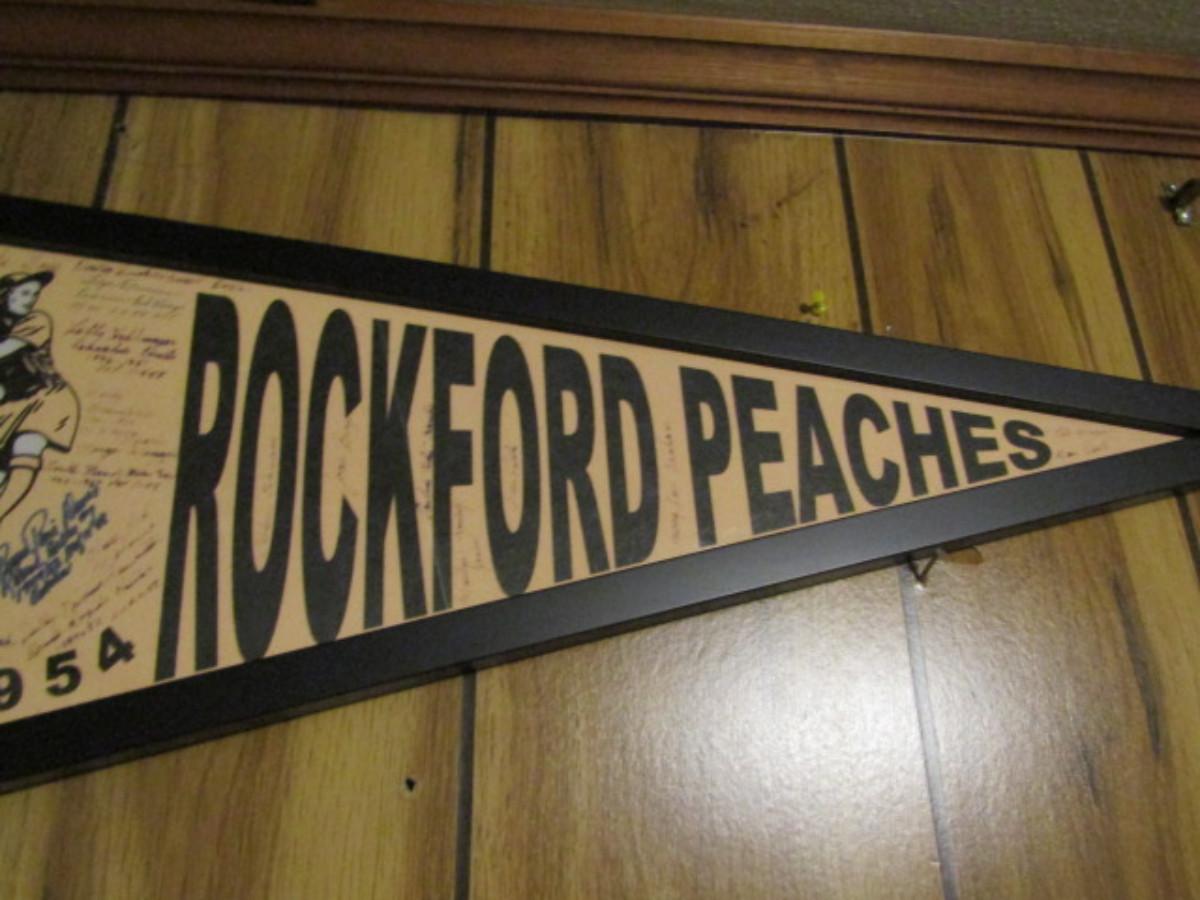 Framed Rockford Peaches Ladies Pro Baseball Team Pennant- Signed by Players
