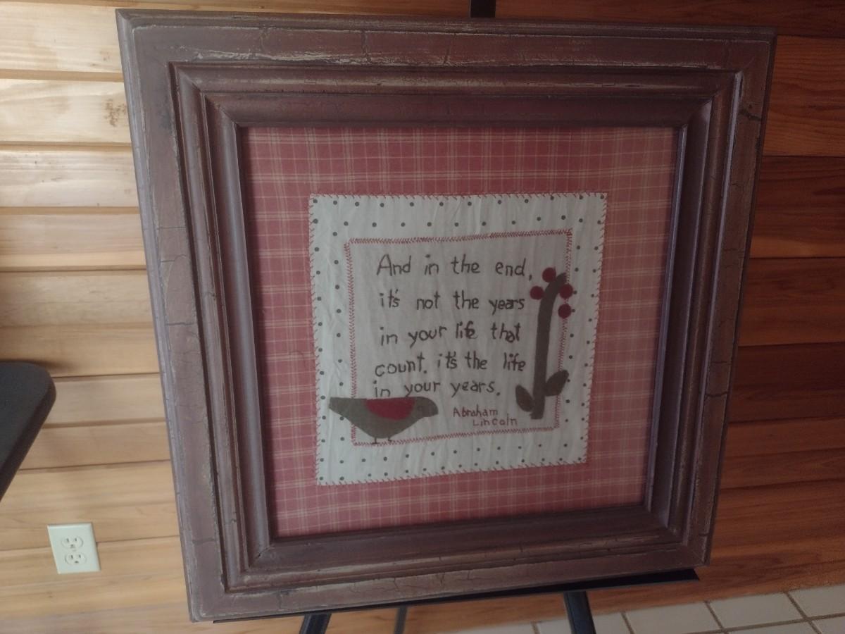 Framed Rustic Quilt Fabric Art with Abraham Lincoln Quote