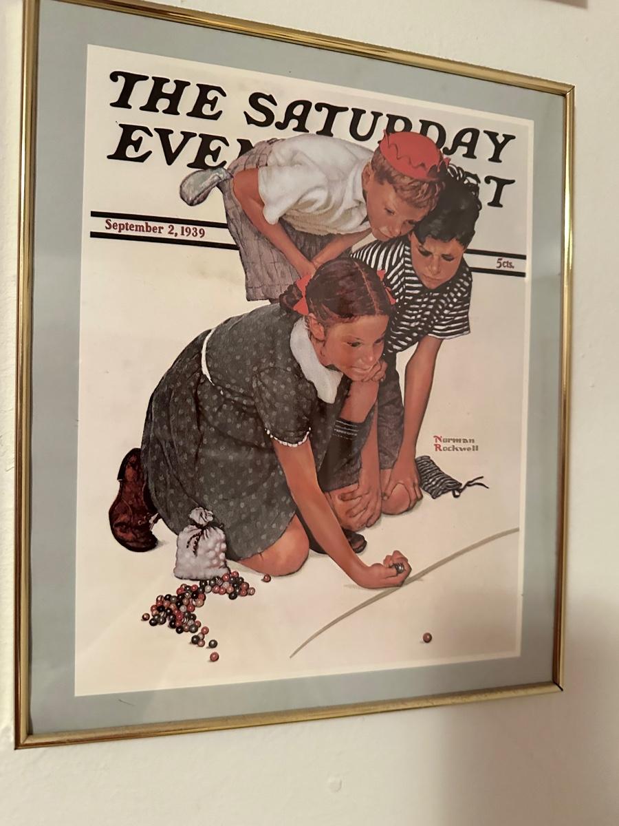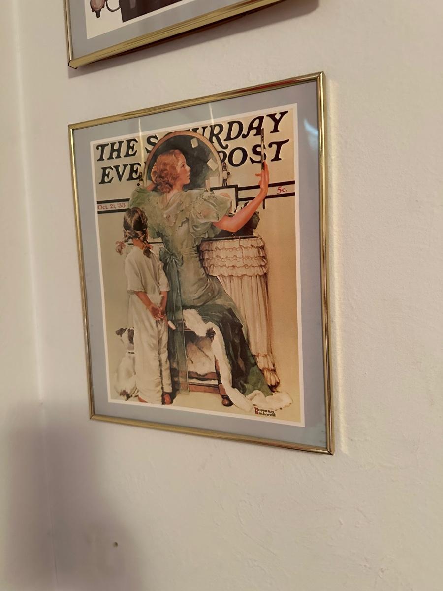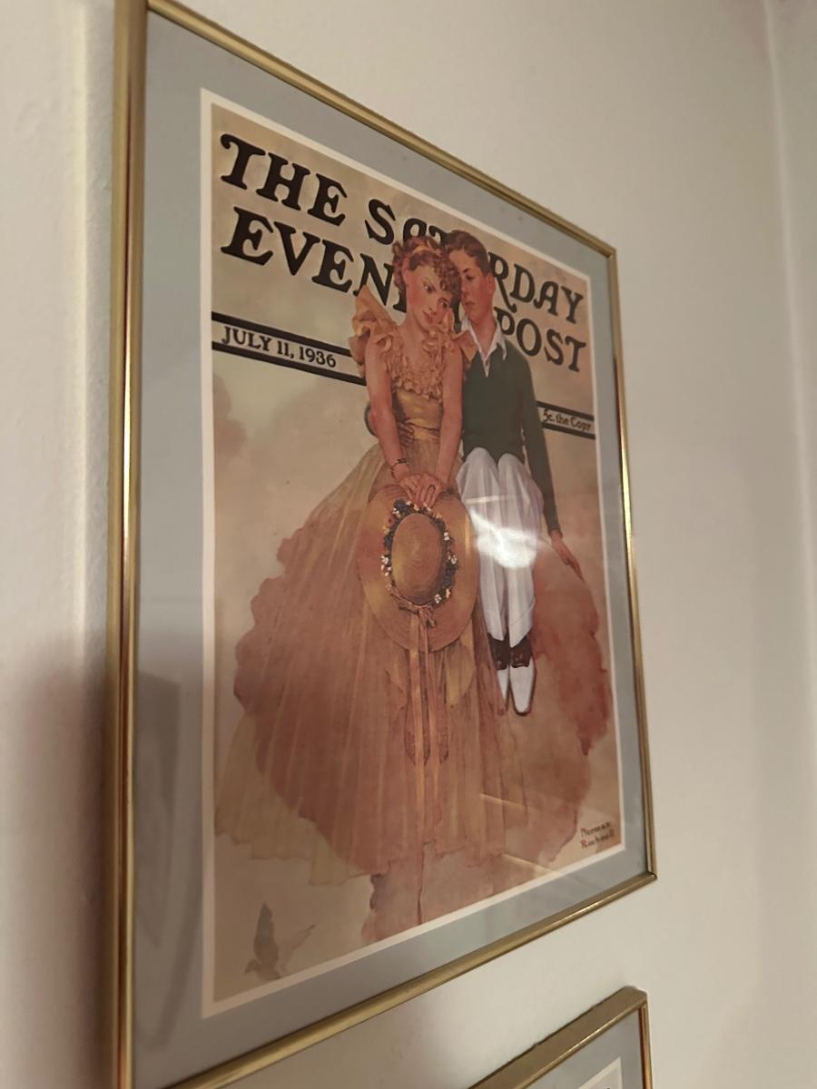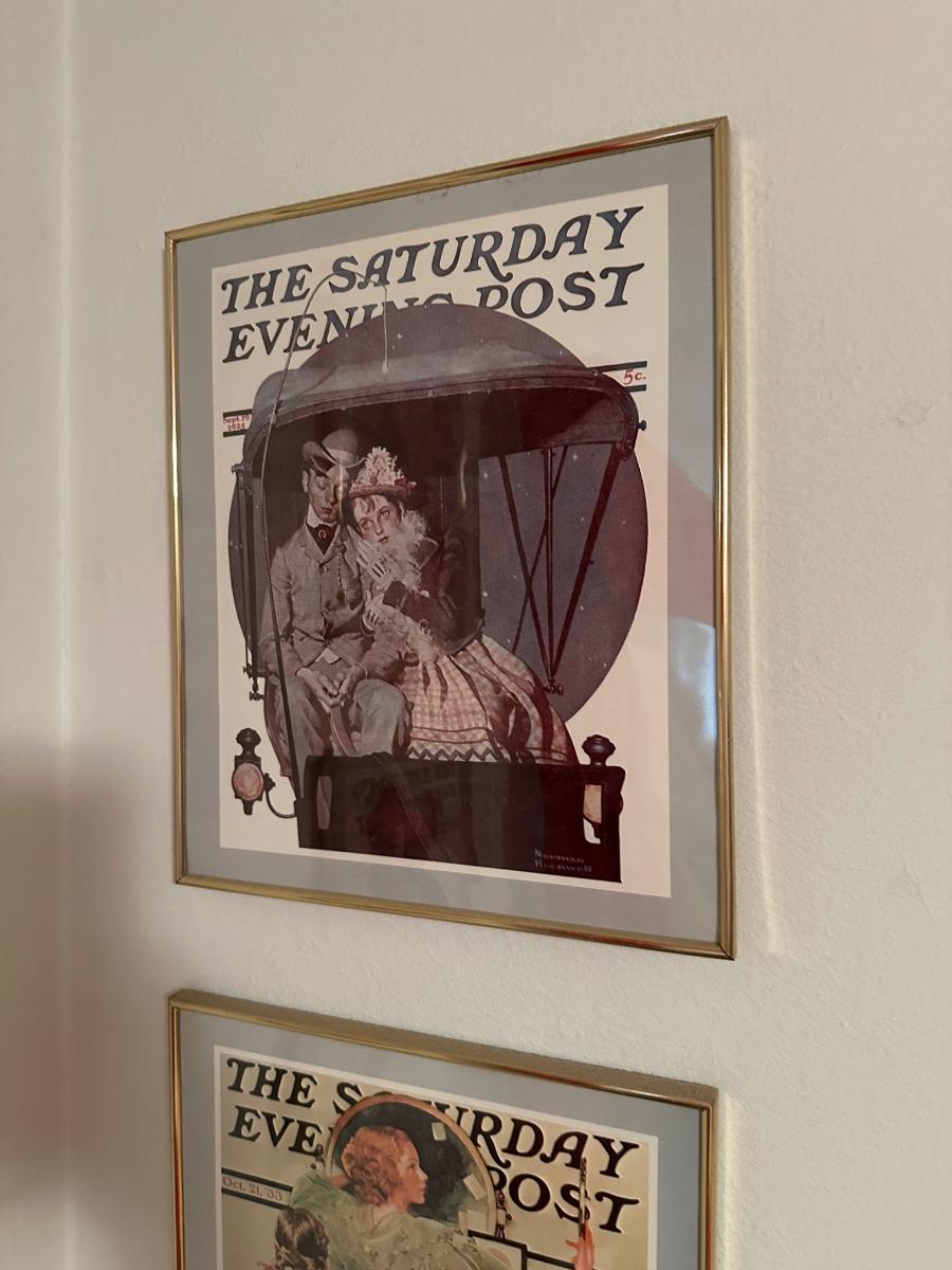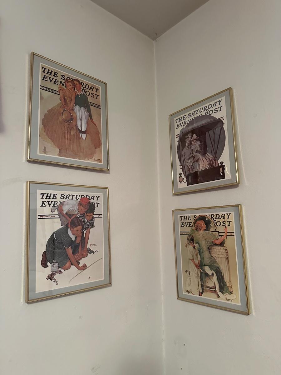 Four framed The Saturday Evening Posts.