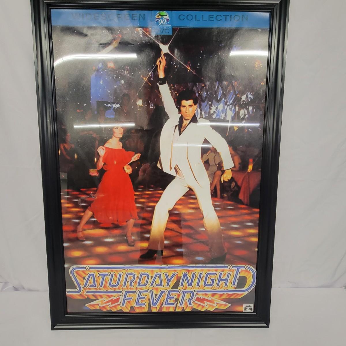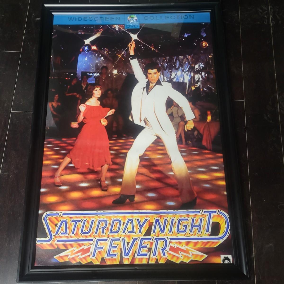 Large framed poster of Saturday Night Fever in good condition. Frame and poster show no scratches or damage. Frame is a high density styrene with plexiglass. OD are 30" x 43" x 1.25" Shipping Available. Shipping Art can be costly please call UPS store at 828-252-6930 for quote.