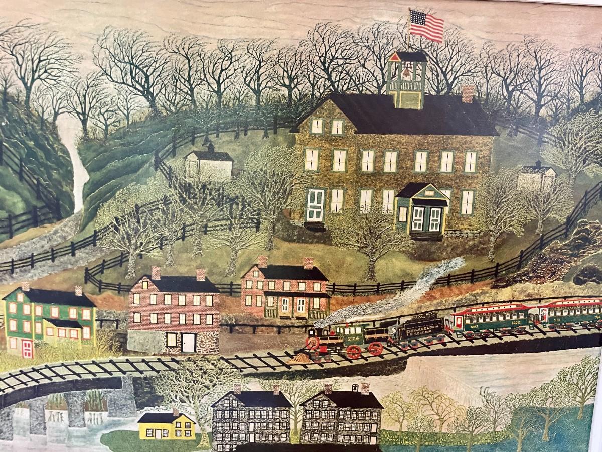 Framed school & train mounted print