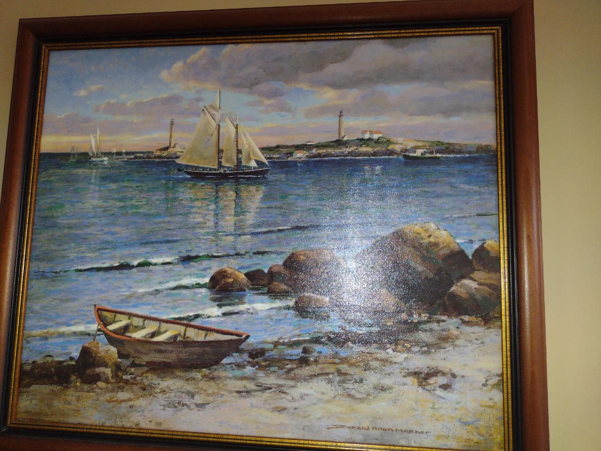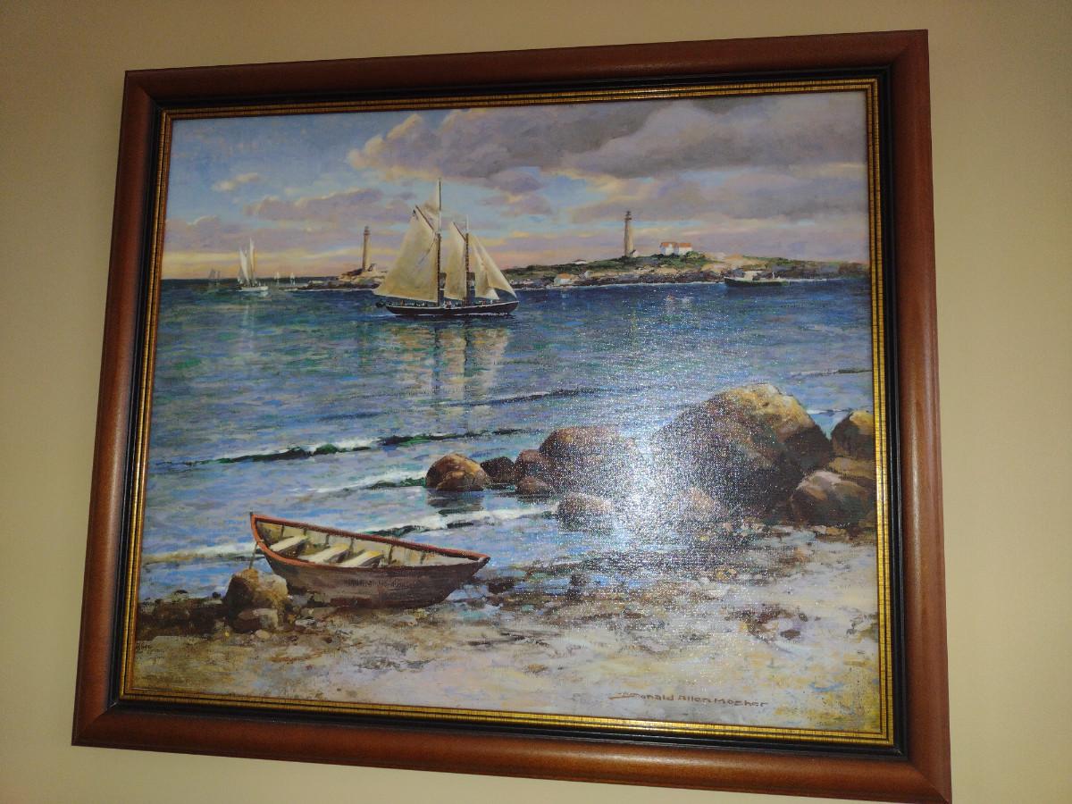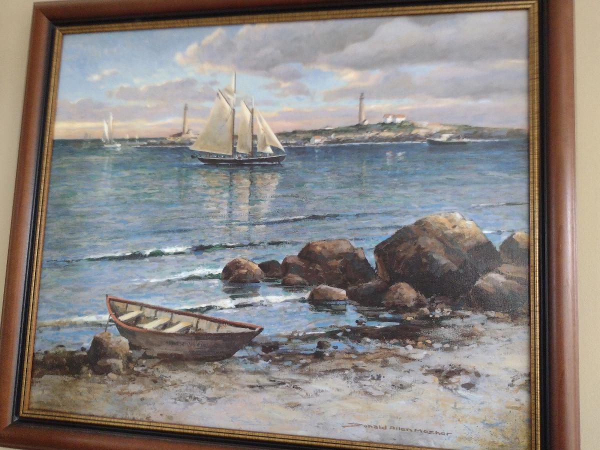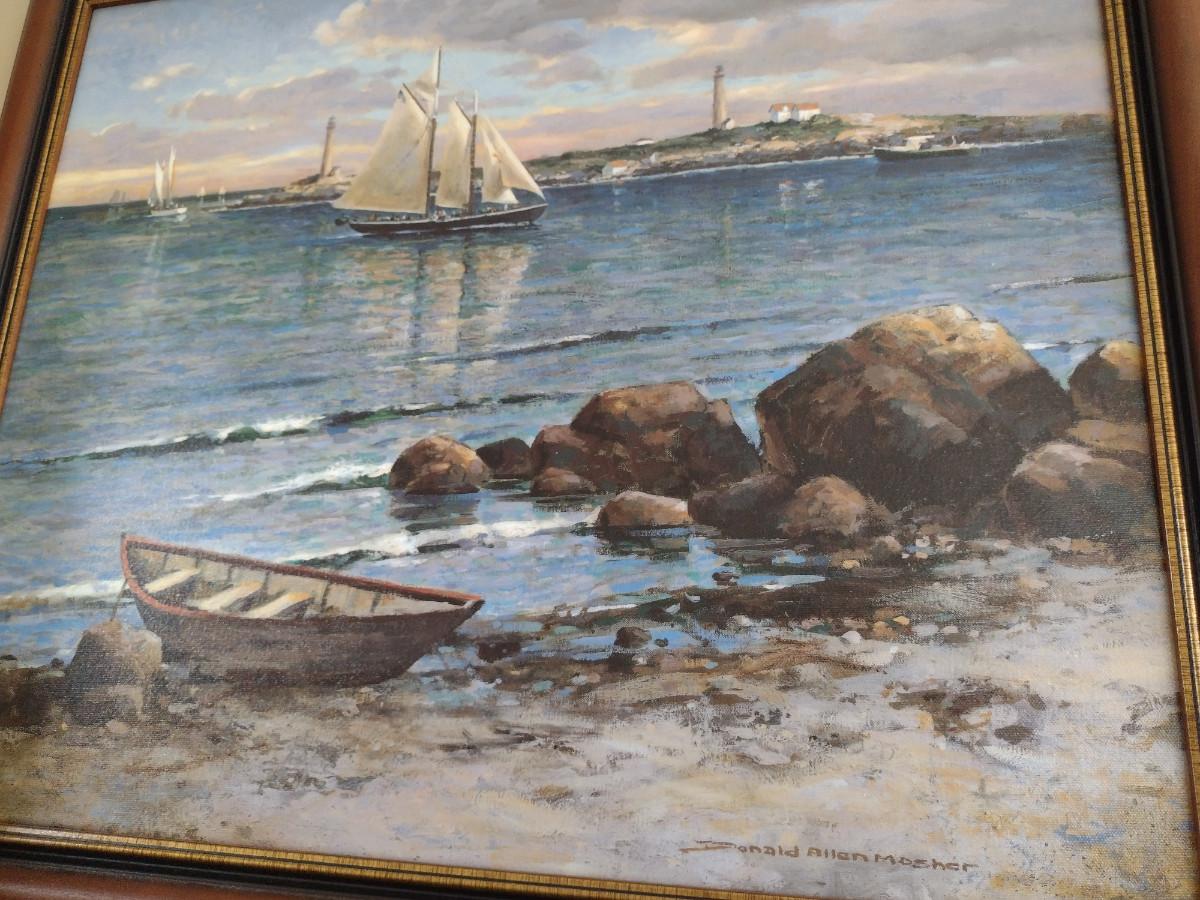 Framed Seascape Painting by Donald Allen Mosher- Approx 23 1/2" x 27 1/2"