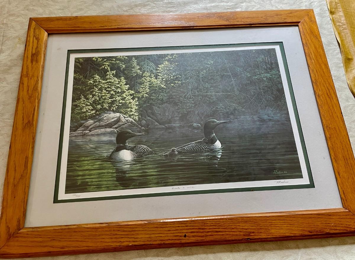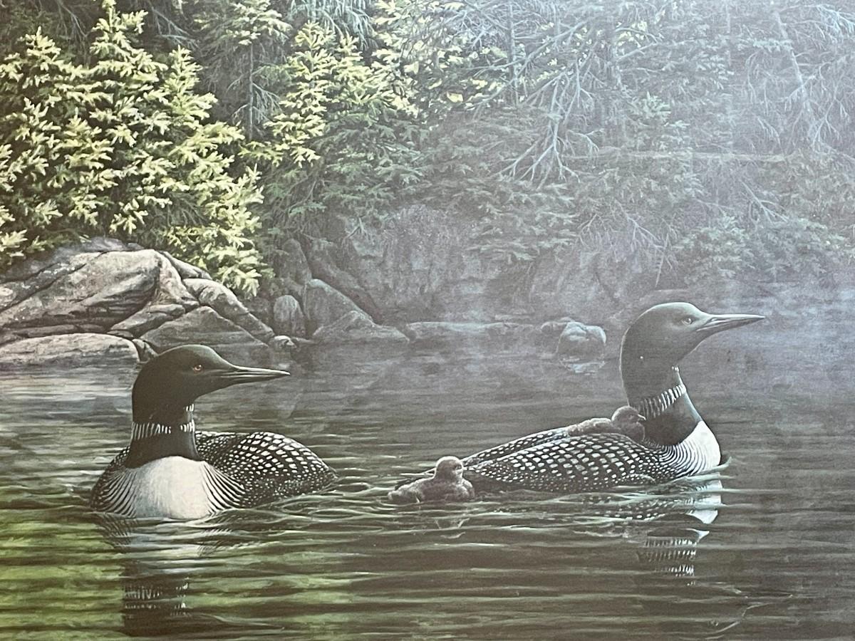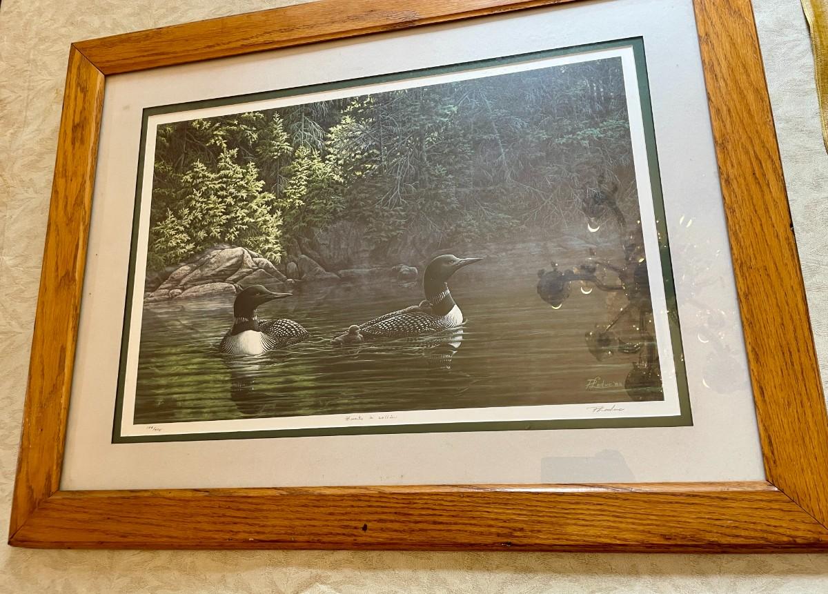 Framed signed and #d "Ring-necked Loons" print by LeDuc