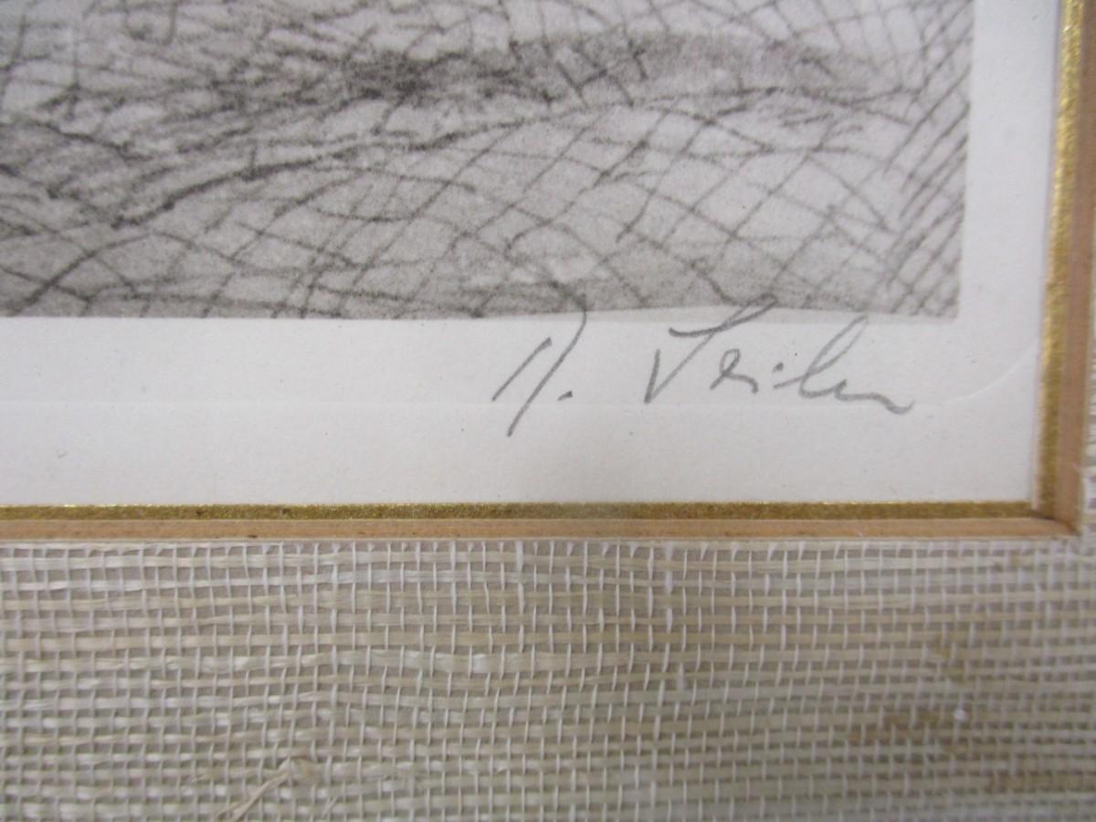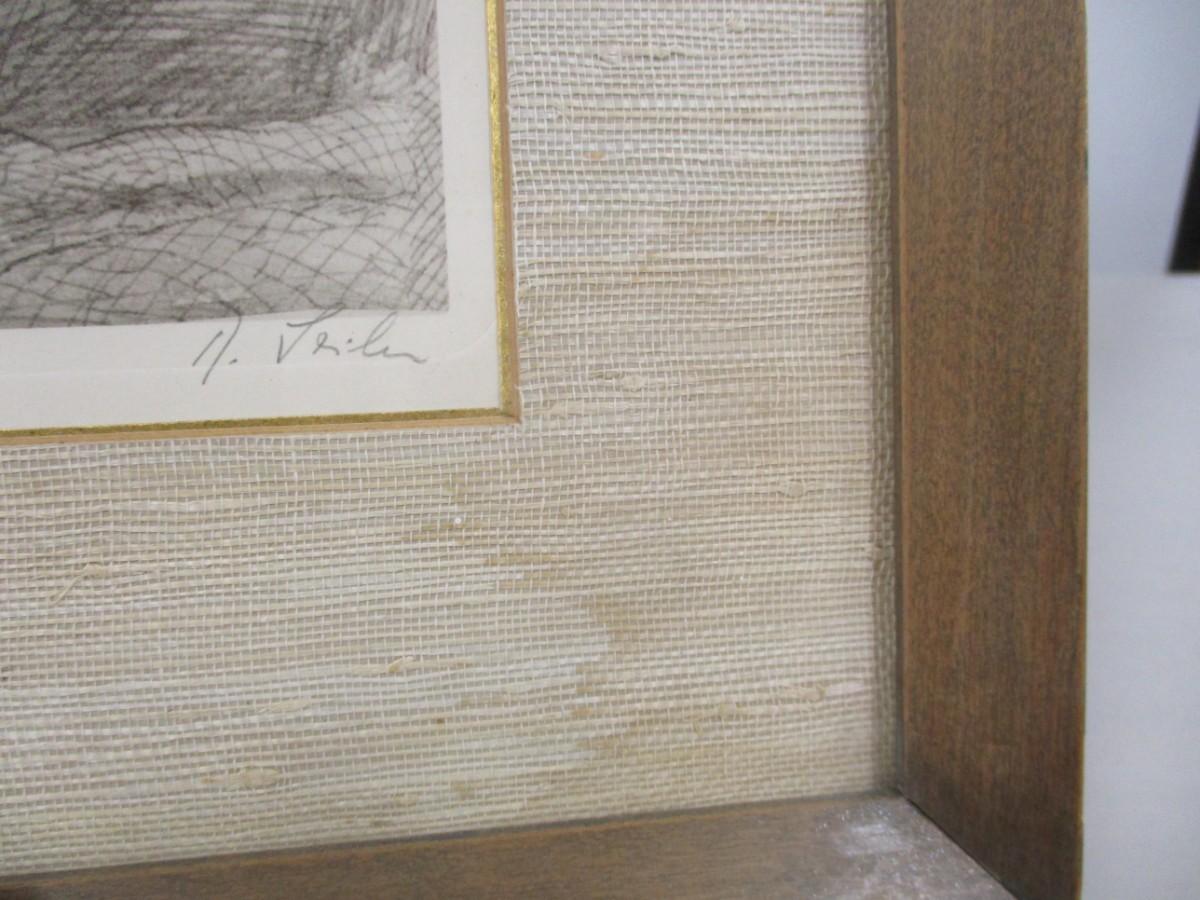 Framed & Signed Asian Drawing "Fisherman Resting" Pencil Artwork 15 1/8" x 17 1/4"