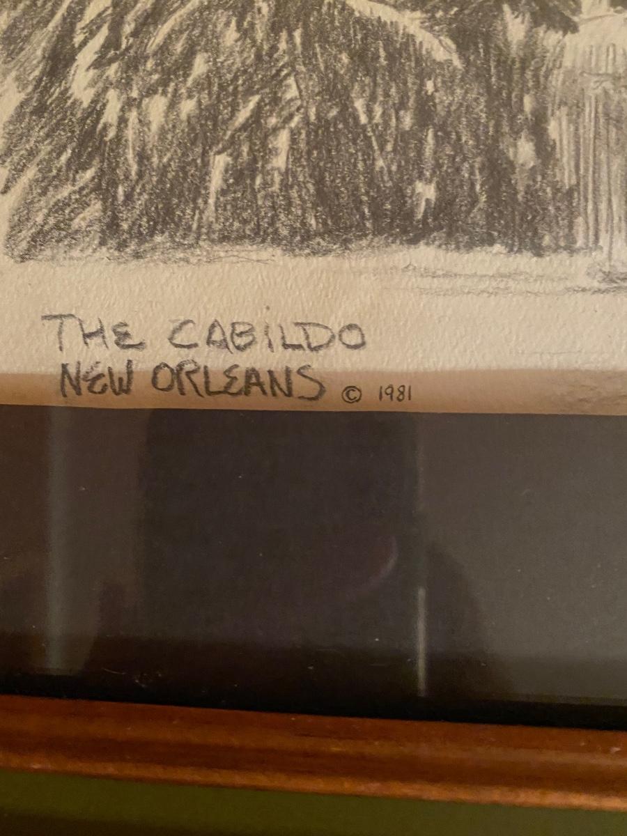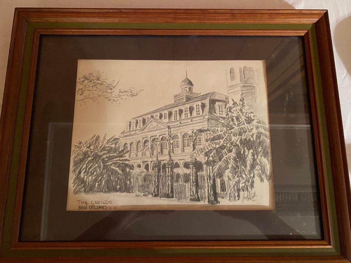 Signed & framed print of the Cabildo New Orleans by Brent McCarthy, noted artist. 1981. 18-1/4w x 14-1/4h