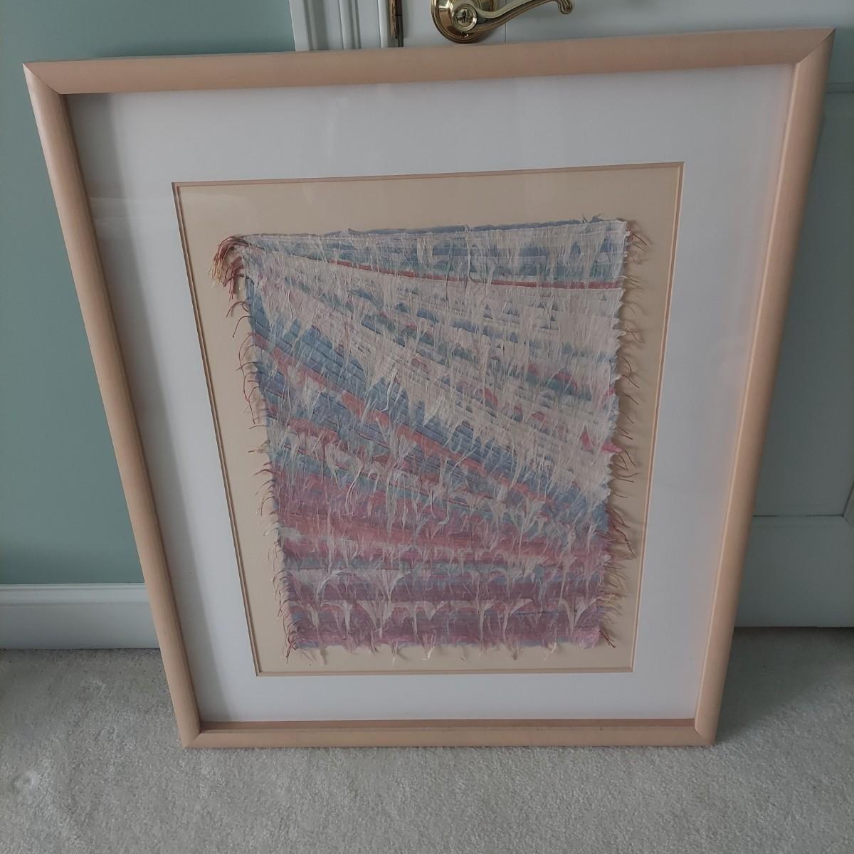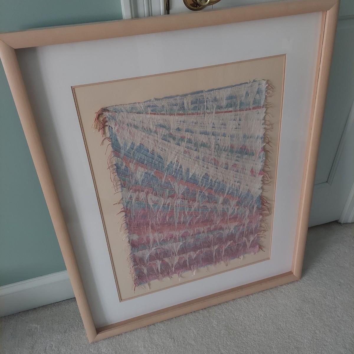Large piece of signed mixed media art that appears to be textile. In a wood frame with matte. Measures approximately 30” x 36"H. Please see photos for details. Shipping available. Shipping certain items can be costly. We suggest contacting our preferred local shipping provider, Postage Express, with dimensions and getting an estimate before bidding: (828) 670-5501 or shipping@postageexpressnc.com